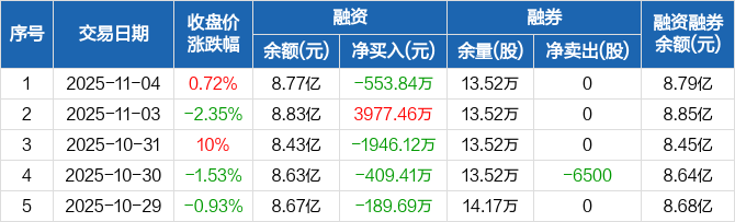 西藏天路:融资净偿还553.84万元,融资余额8.77亿元(11-04)