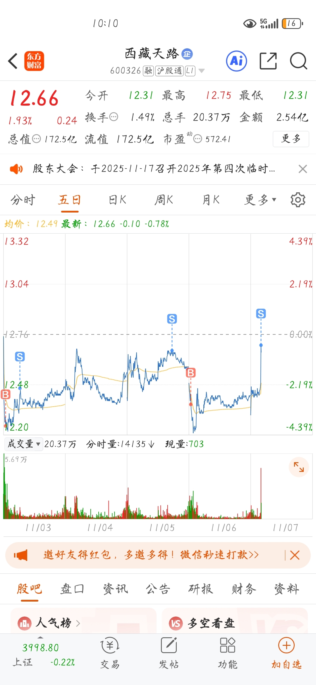 $西藏天路(SH600326)$ 拜拜,下面等你哦