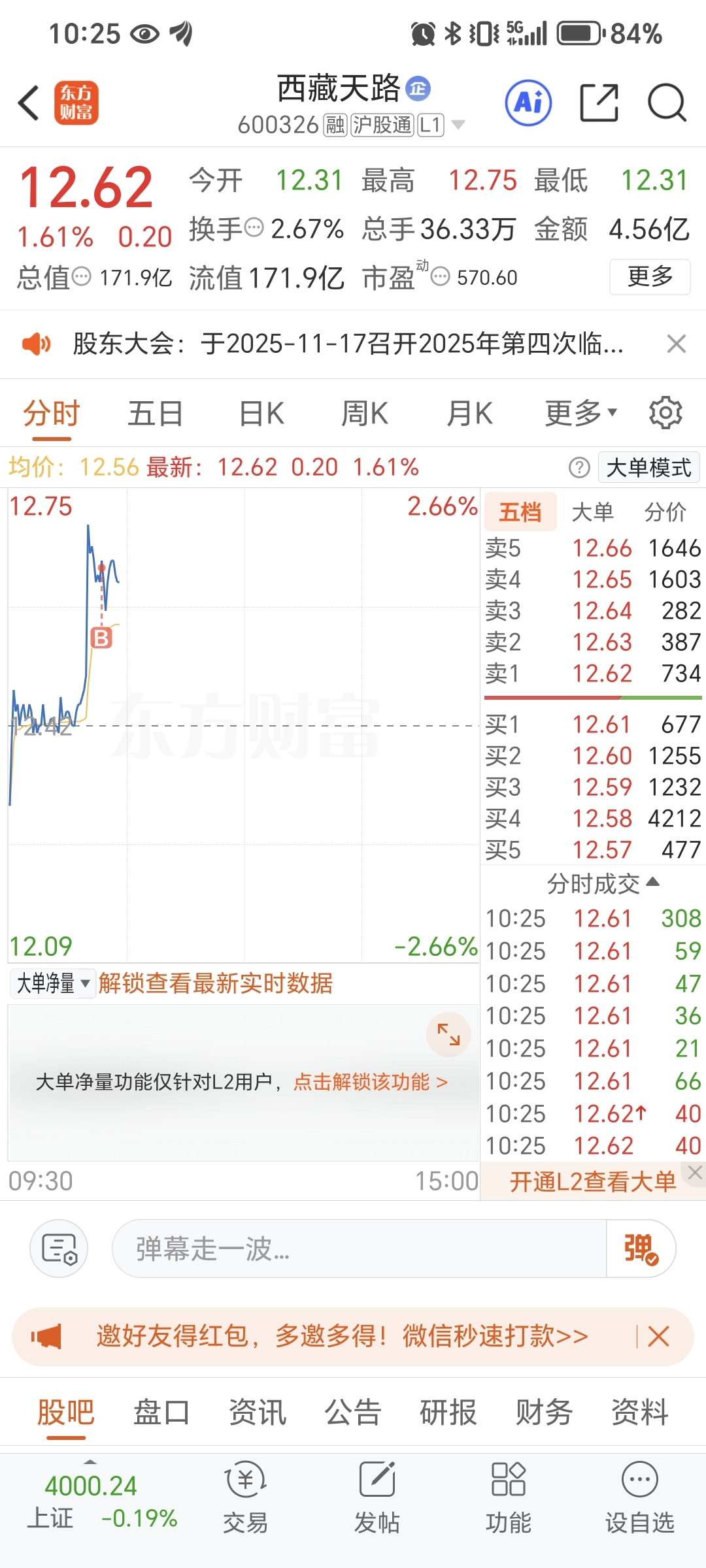 $西藏天路(SH600326)$ 靠,又挂山顶了