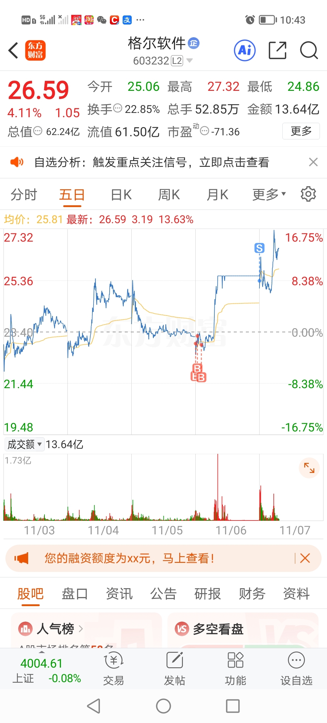 昨天早上卖了你进了格尔我还没接回来你就冲了吗