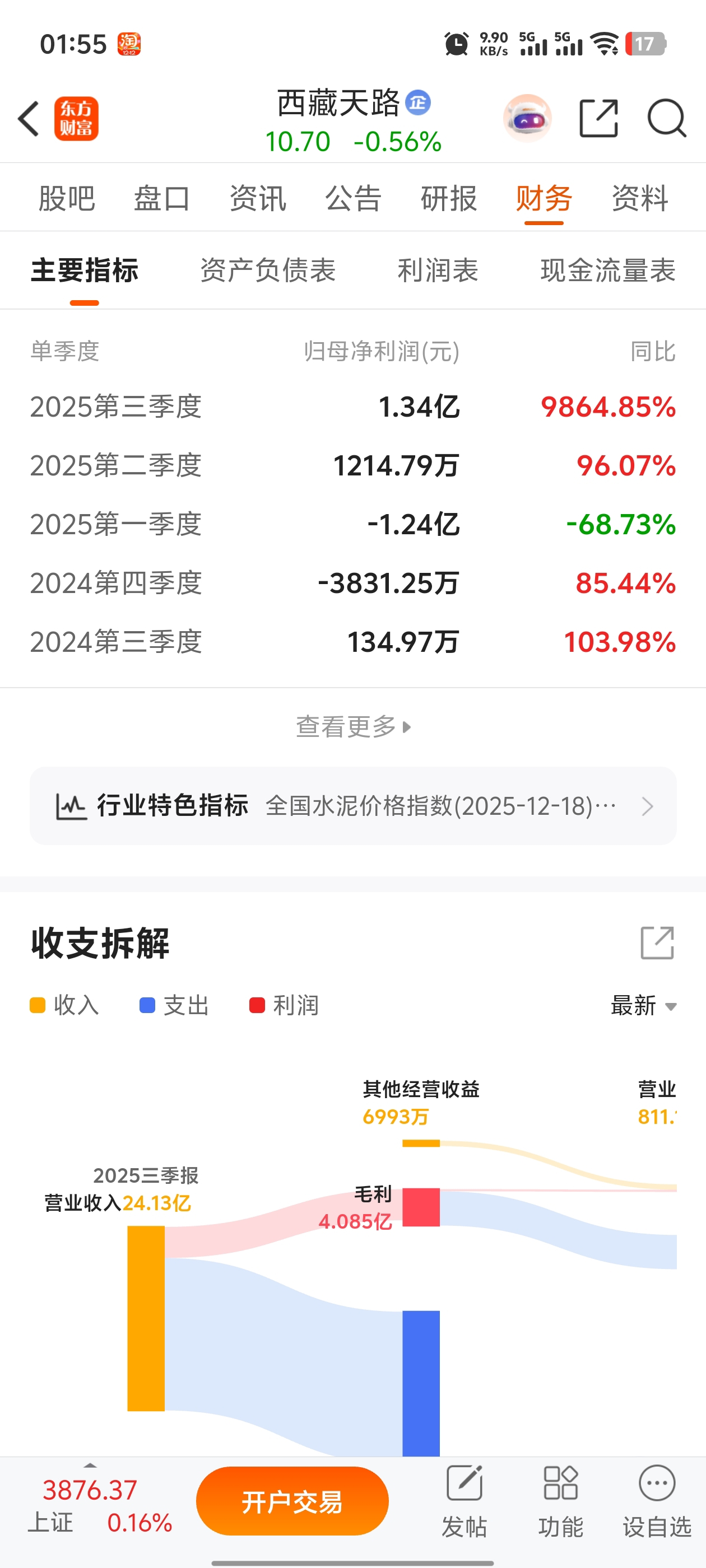 $西藏天路(SH600326)$ 业绩爆涨9864%这样的企业都没游资看上真是没谁了
