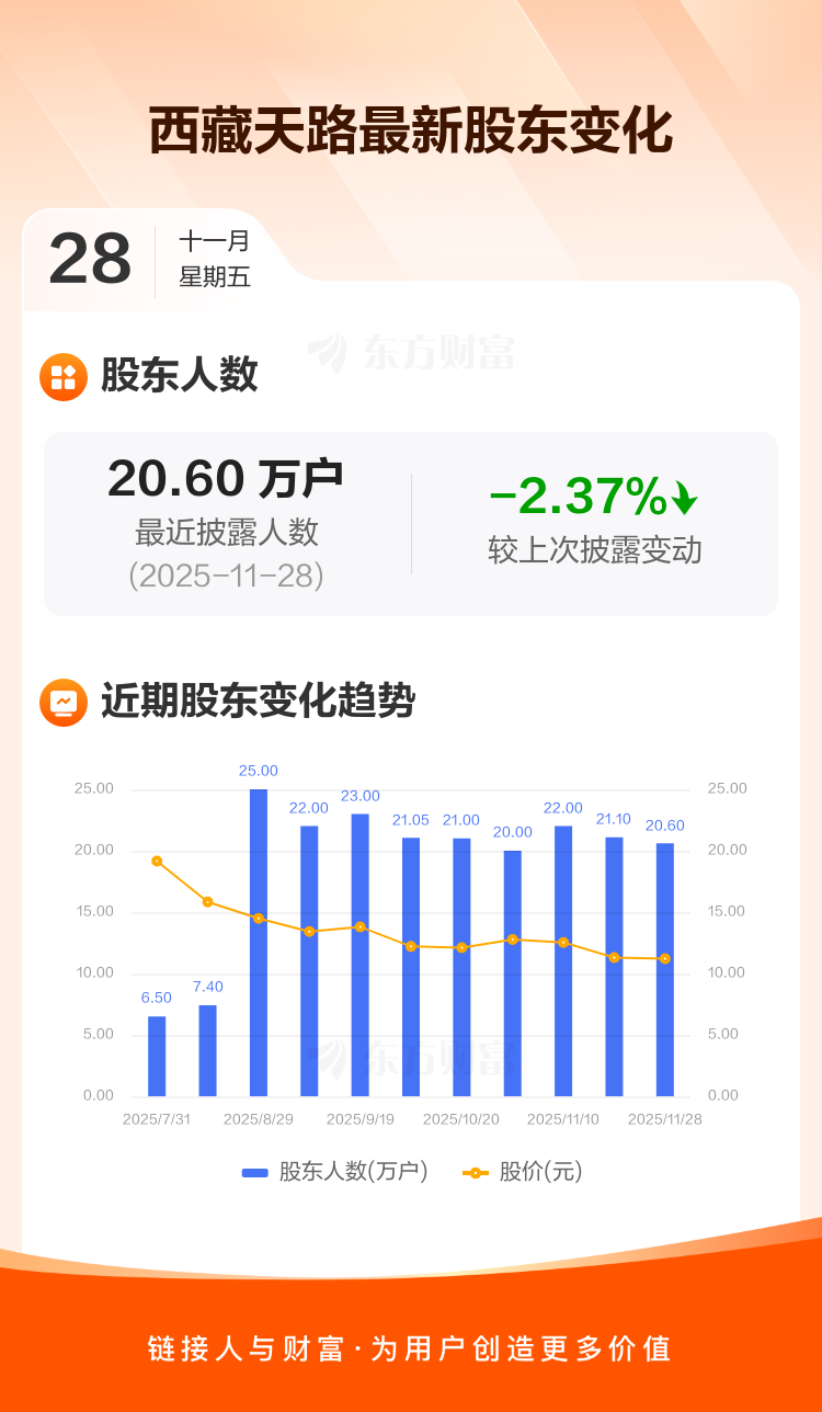 西藏天路:截至11月28日最新股东户数20.60万户,较上期减少2.37%