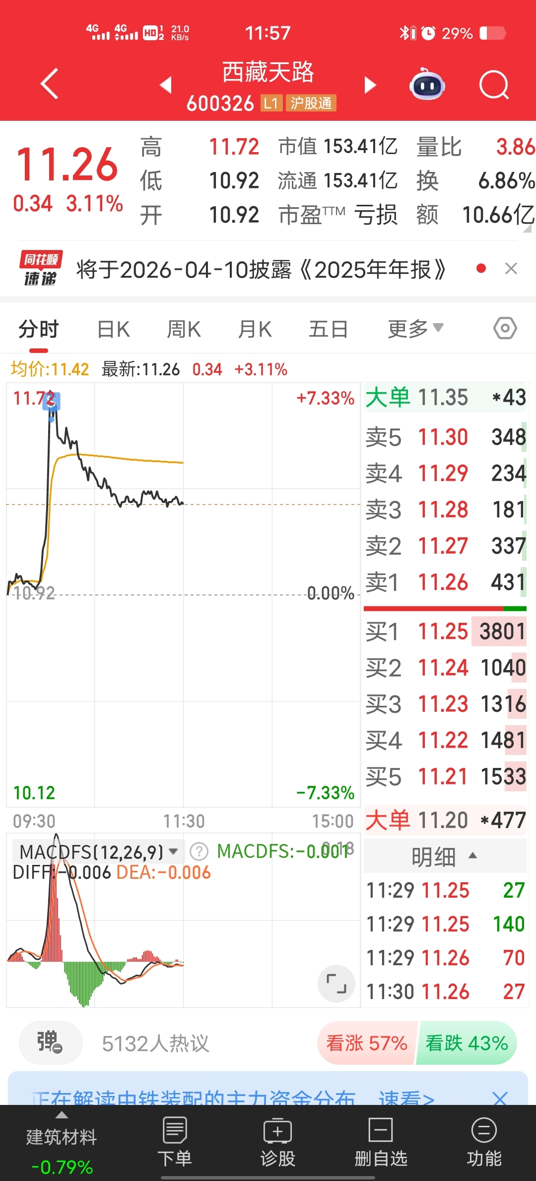 $西藏天路(SH600326)$ 不论对错,出掉了,好不容易又做盈利了,一共和他纠结了150多天,虽然仓位小,不影响什么,也是很恶心,感觉像吃了苍蝇一样。