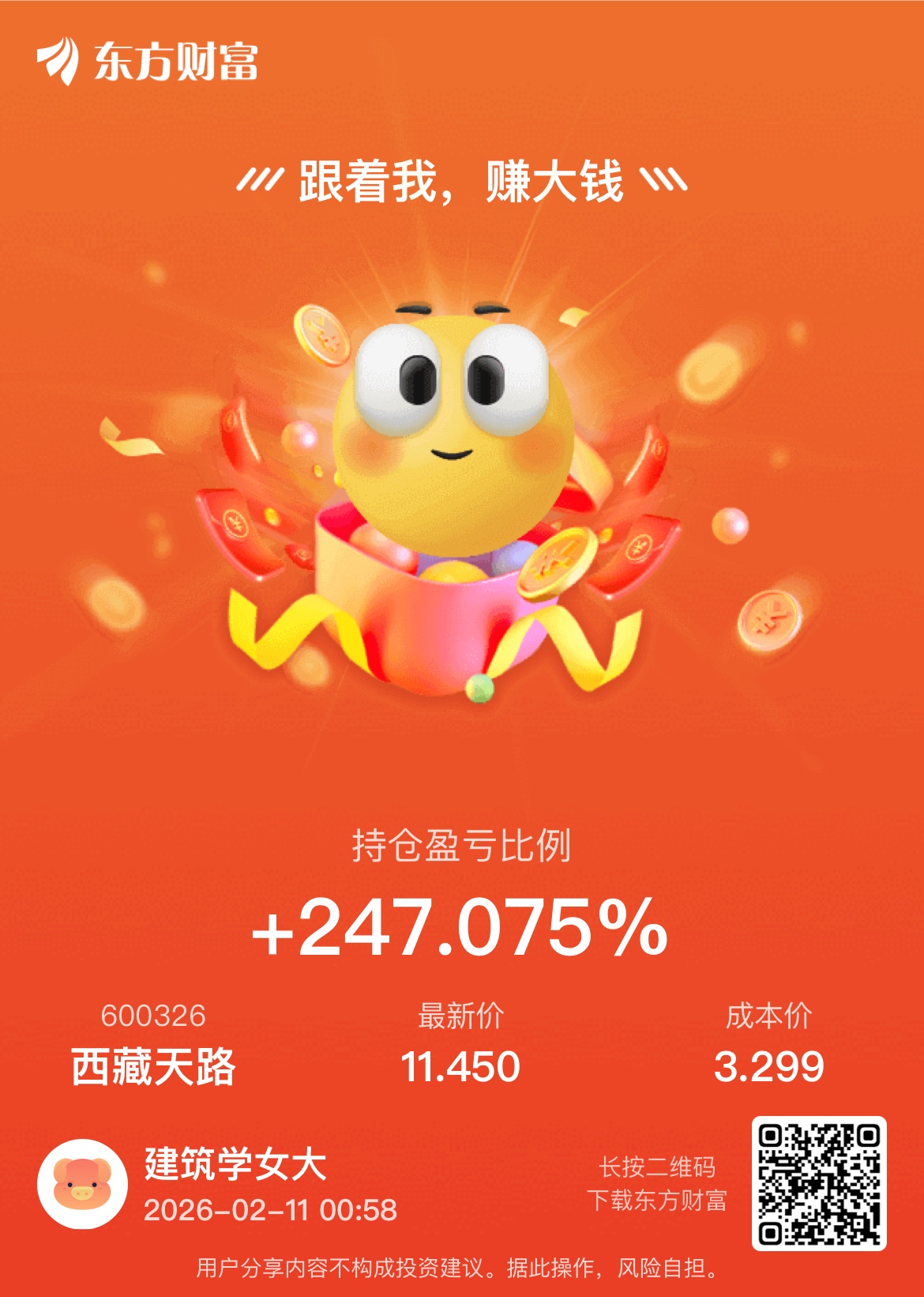 温馨提示: 1.根据《证券法》规定,禁止编造、传播虚假信息或者误导性信息,扰乱证券市场;2.用户在本社区发表的所有资料、言论等仅代表个人观点,与本网站立场无关,不对您构成任何投资建议。用户应基于自己的独立判断,自行决定证券投资并承担相应风险。《东方财富社区管理规定》