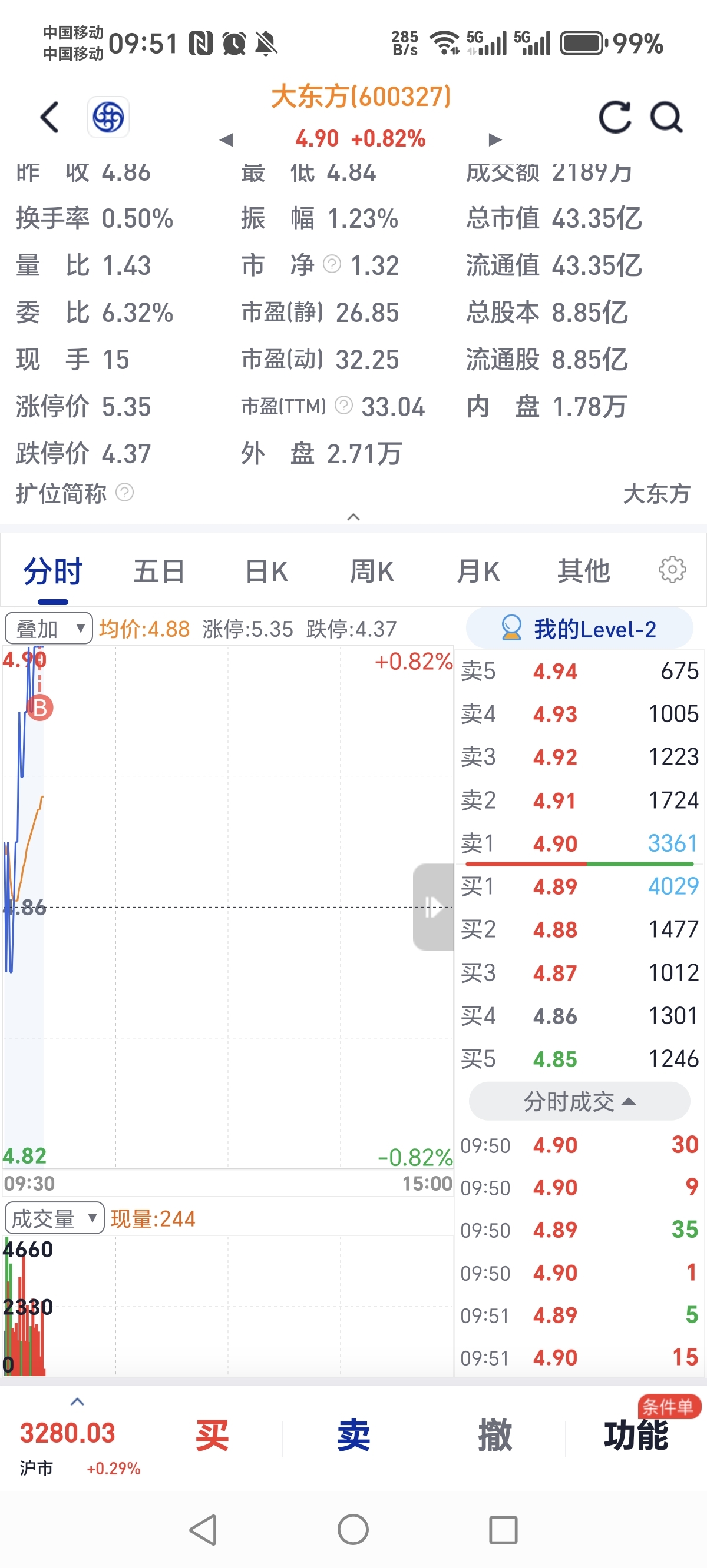 $大东方(SH600327)$ 4.9最高点买了,绝望