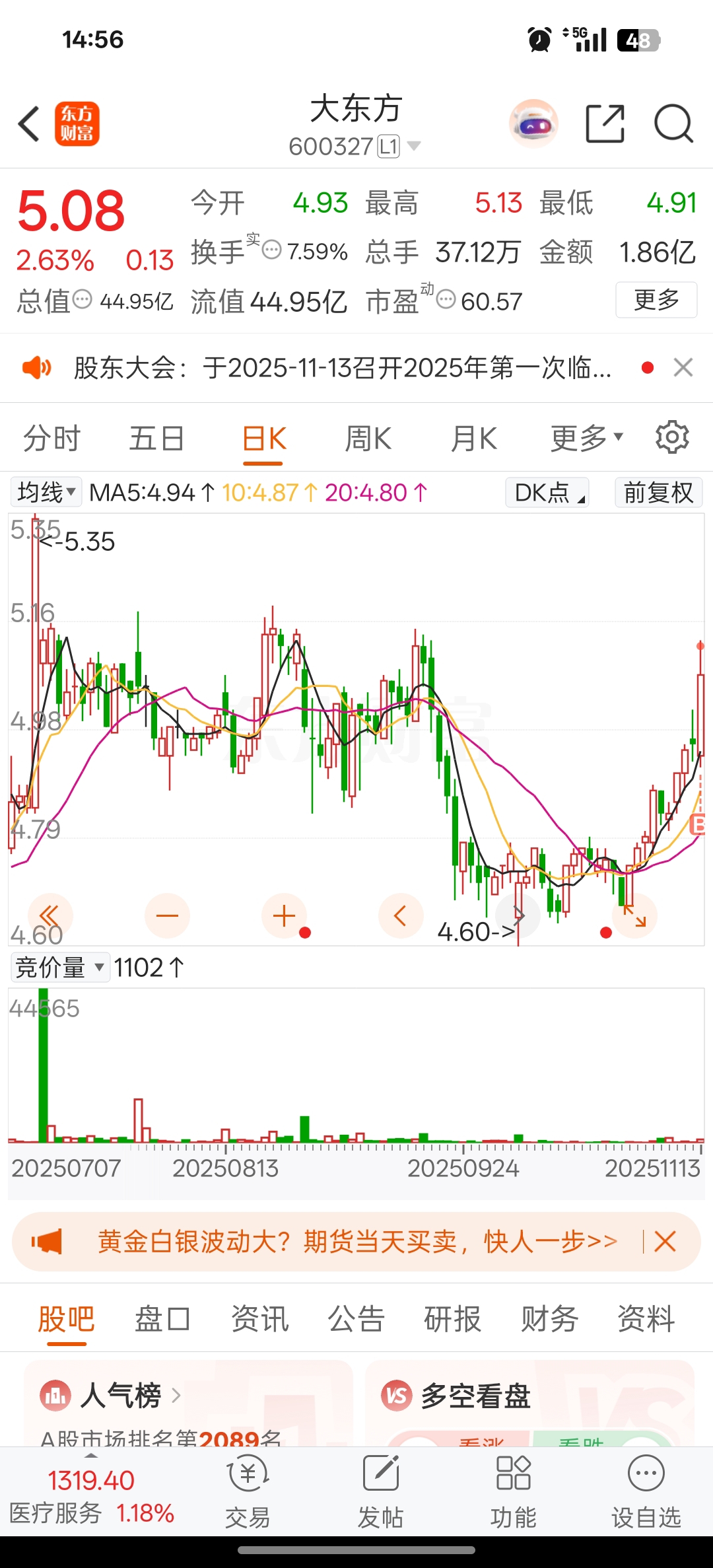 $大东方(SH600327)$ 不好意思,怪我买崩了