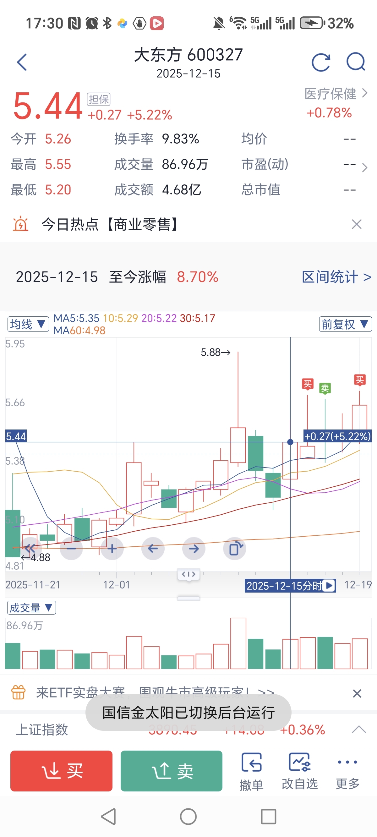 $大东方(SH600327)$ 这股拿到25年结束绝对能吃肉就是涨得太慢了,5.44这个洗盘线盘了好久也就近3个交易日内拉升,就是庄太墨迹