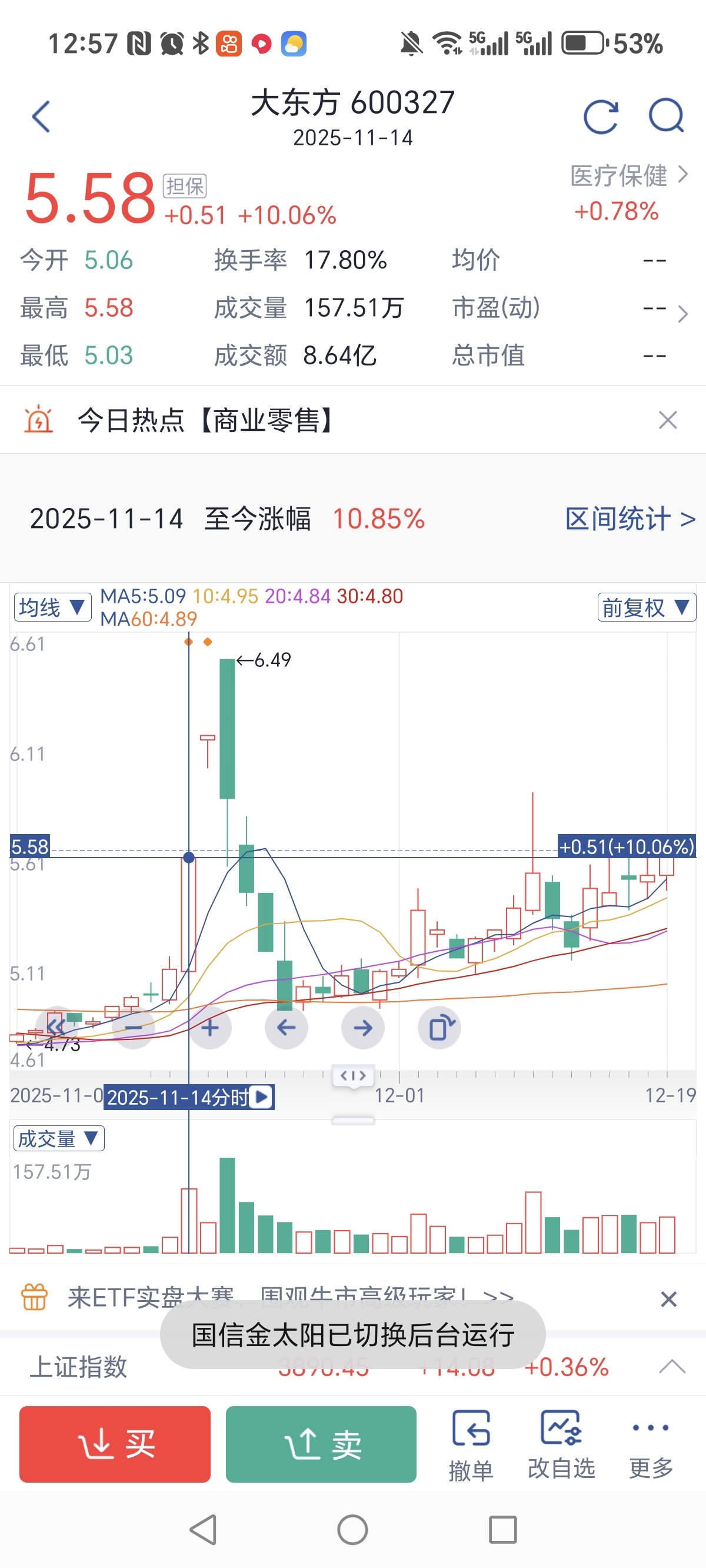 $大东方(SH600327)$ 周一不知道还会不会回踩5.44一下,5.51位置都不一定能到,观察这股就会发现,沿着5日线上涨,五日线破位最多也就2天内收回来,难得周五收盘在之前涨停价5.58上方,所以这股跟还是不错滴,坚守到25年结束之前一定有厚报,打心眼里最看不起这样的垃圾庄,天天就知道压盘。