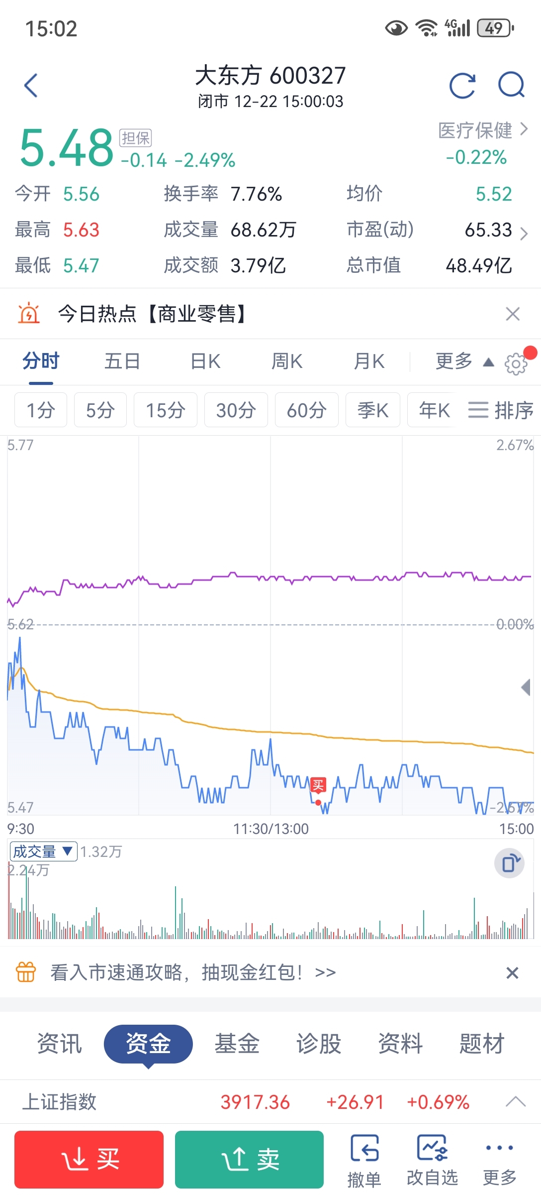 5.455.30根本买不到。索性中午委托5.48买了点。给你们机会都不中用,天天