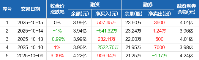 中盐化工:融资净买入507.45万元,融资余额3.99亿元(10-15)