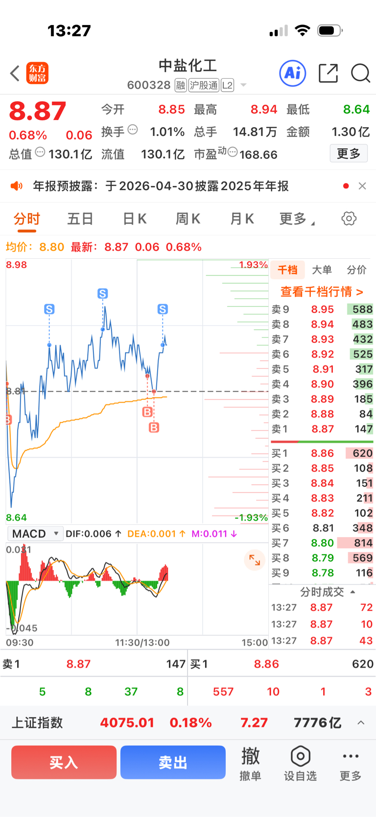 $中盐化工(SH600328)$ 这种不动的股只能做T