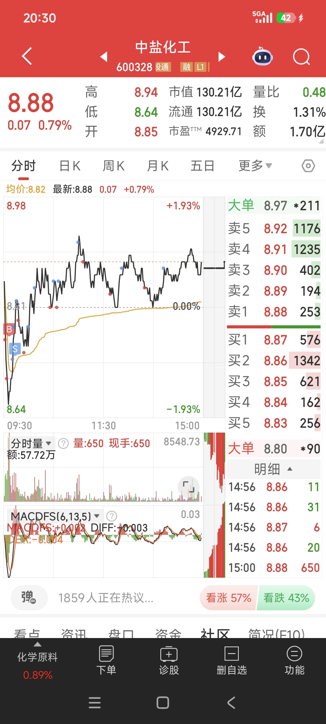$中盐化工(SH600328)$