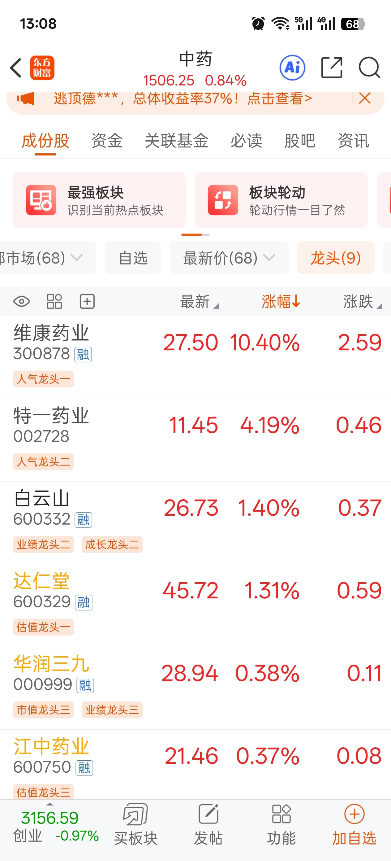 $达仁堂(SH600329)$ 龙头你已经不是老大了。都比你强。