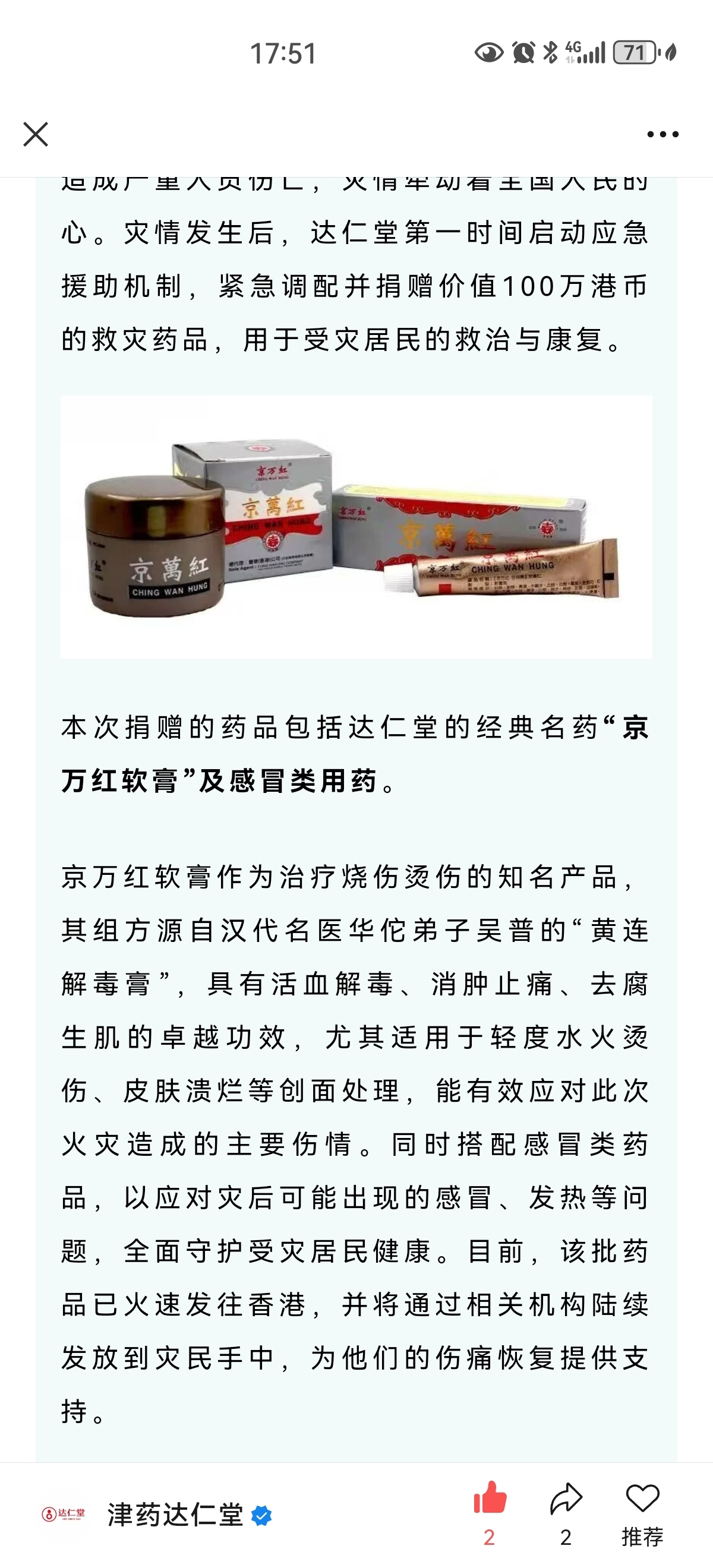 $达仁堂(SH600329)$ 这个药,对烫伤治疗很好,为你点赞