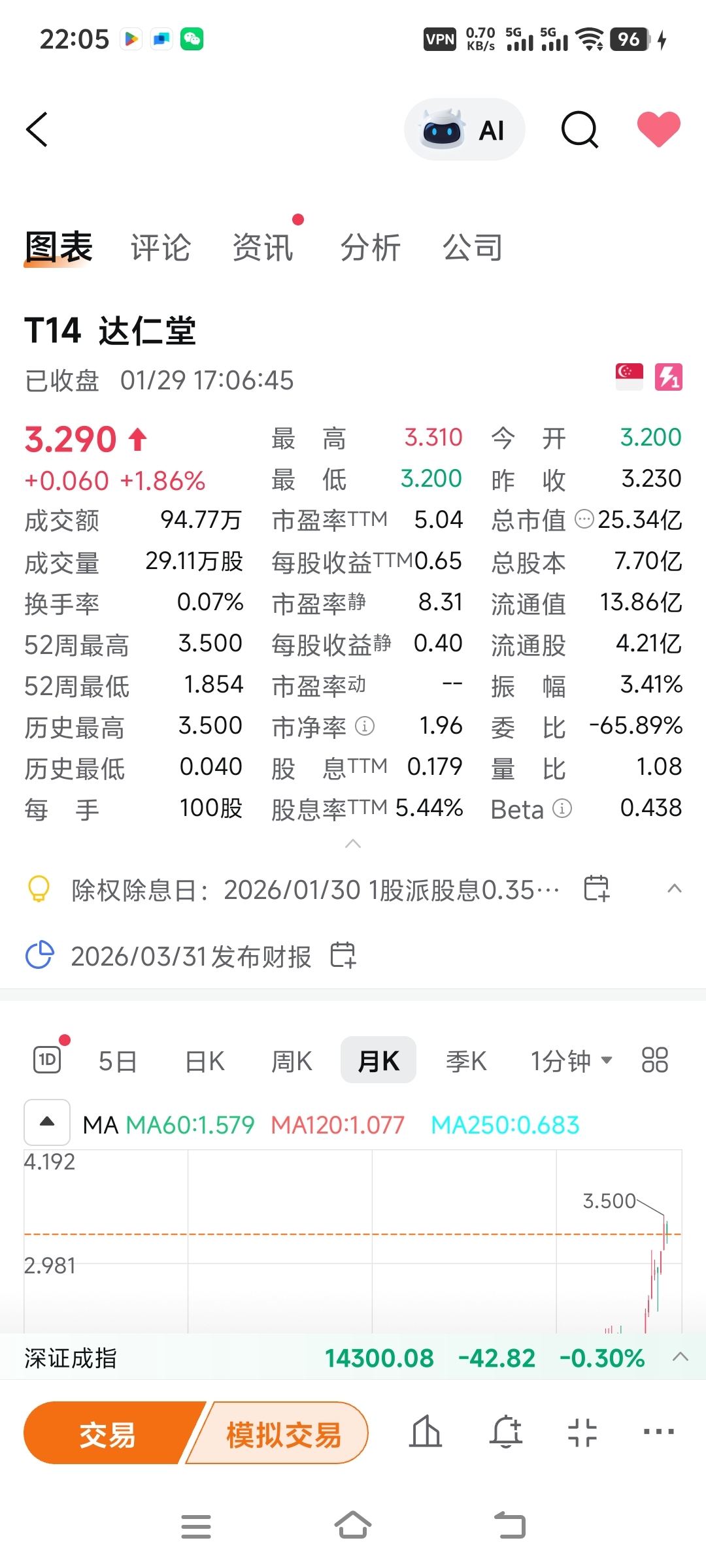 $达仁堂(SH600329)$ 新加坡上市的达仁堂K线图对比