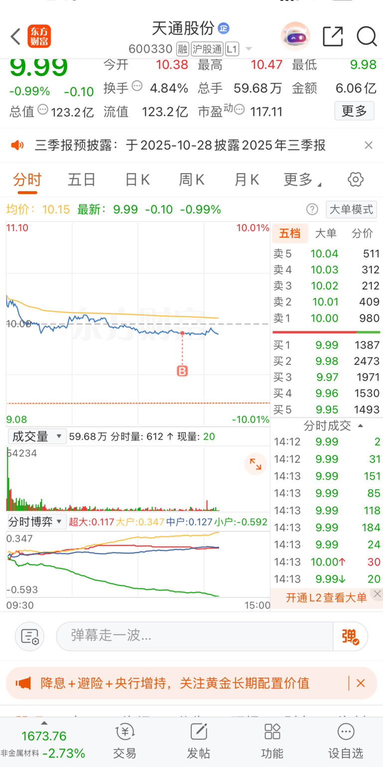 $天通股份(SH600330)$ 有本事就跌停,那我真服