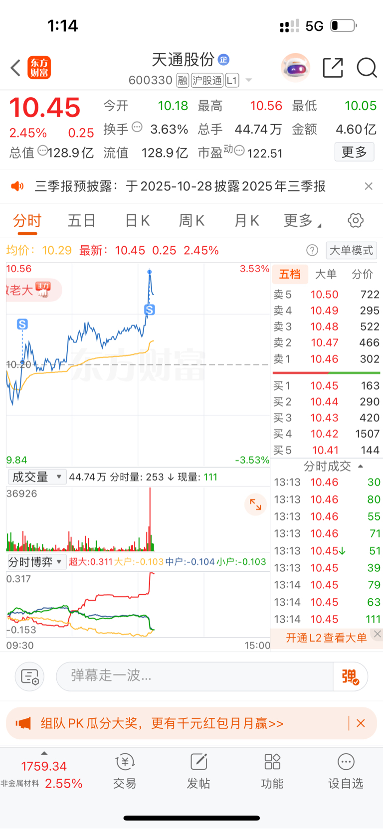$天通股份(SH600330)$ 山顶清仓,感谢主力