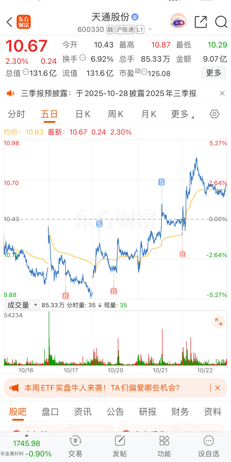 $天通股份(SH600330)$ 明天大涨预定,目前走势趋好,策略上需要从做T转为长线持有,否则容易在上涨途中卖飞