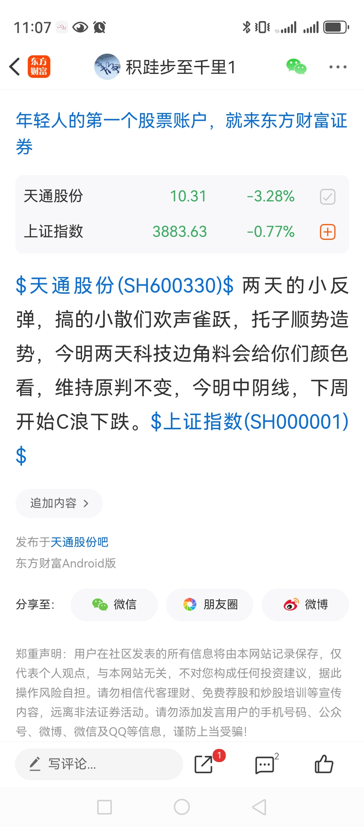 温馨提示: 1.根据《证券法》规定,禁止编造、传播虚假信息或者误导性信息,扰乱证券市场;2.用户在本社区发表的所有资料、言论等仅代表个人观点,与本网站立场无关,不对您构成任何投资建议。用户应基于自己的独立判断,自行决定证券投资并承担相应风险。《东方财富社区管理规定》