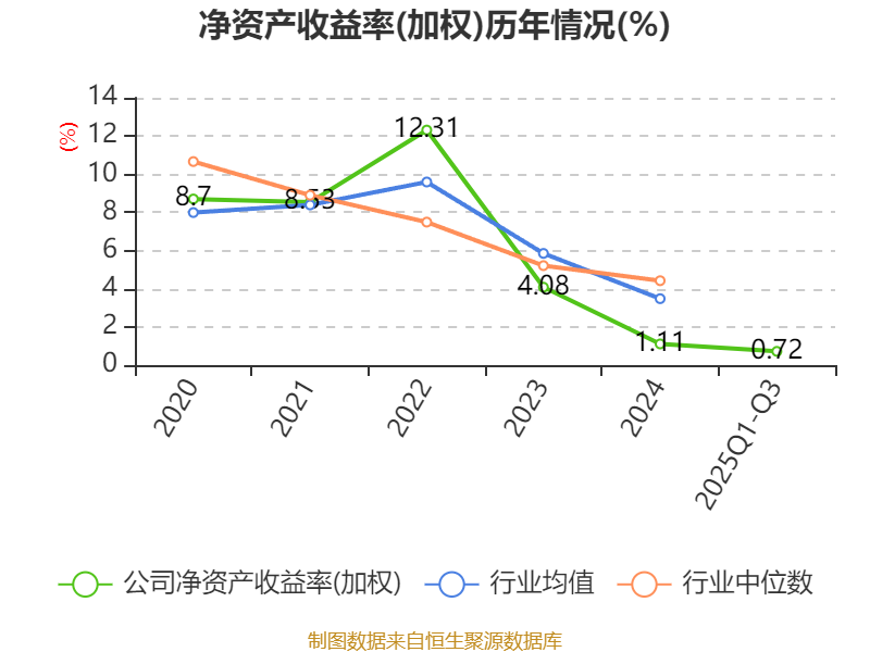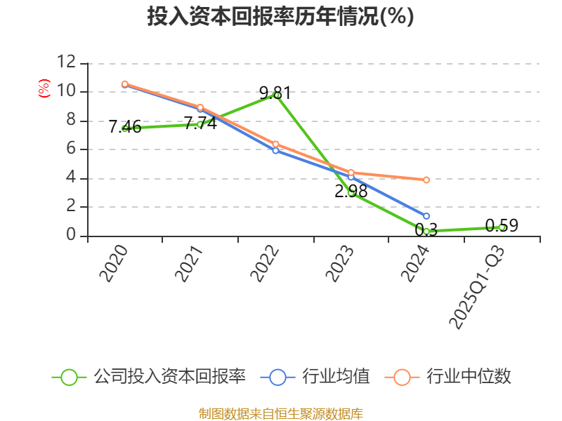 盈利能力方面, 2025年前三季度公司加权平均净资产收益率为0.72%,同比下降0.81个百分点。公司2025年前三季度投入资本回报率为0.59%,较上年同期下降0.44个百分点。