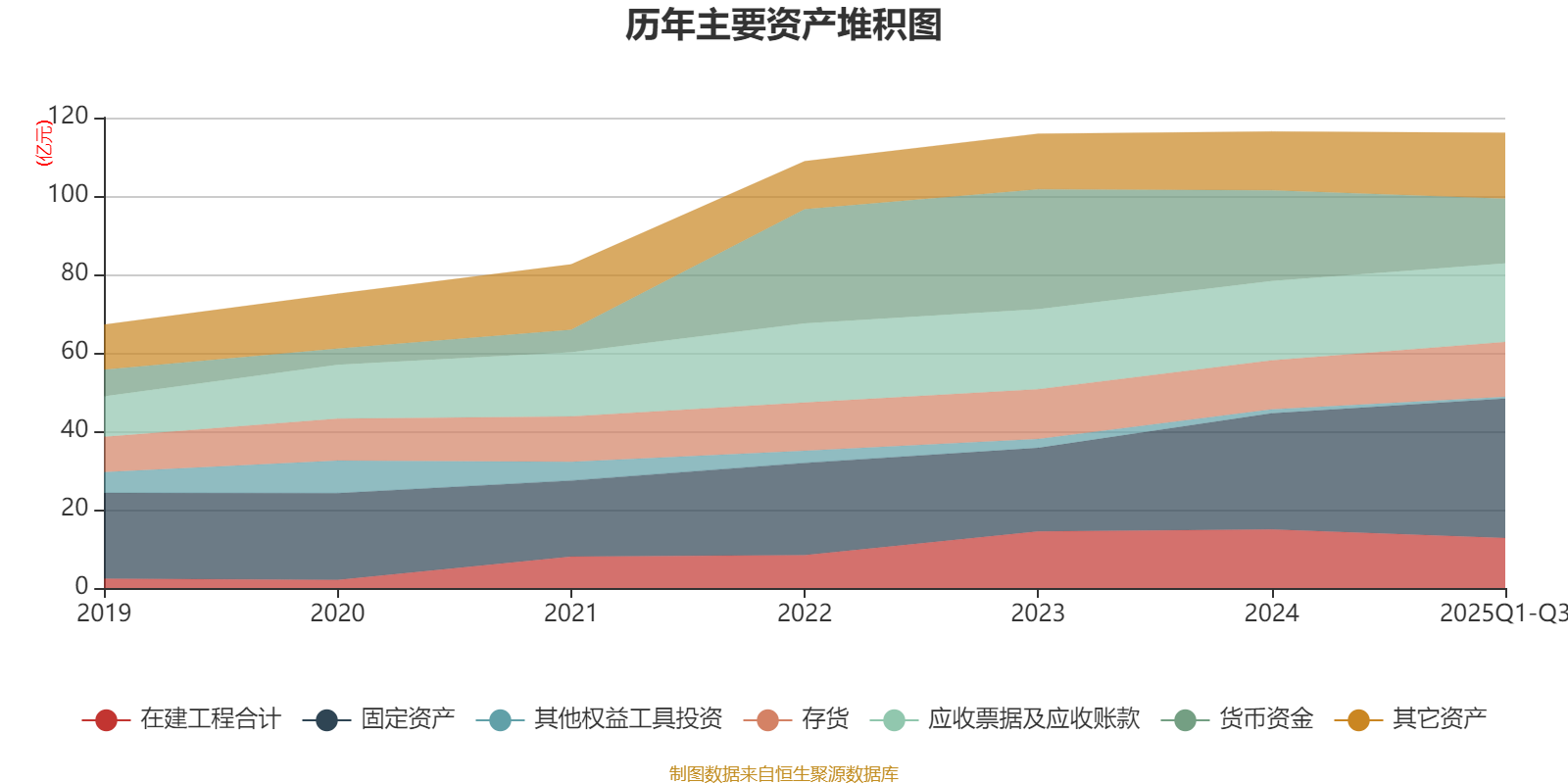 资产重大变化方面,截至2025年三季度末,公司货币资金较上年末减少28.82%,占公司总资产比重下降5.69个百分点;固定资产较上年末增加20.06%,占公司总资产比重上升5.19个百分点;在建工程合计较上年末减少14.42%,占公司总资产比重下降1.82个百分点;存货较上年末增加11.99%,占公司总资产比重上升1.32个百分点。