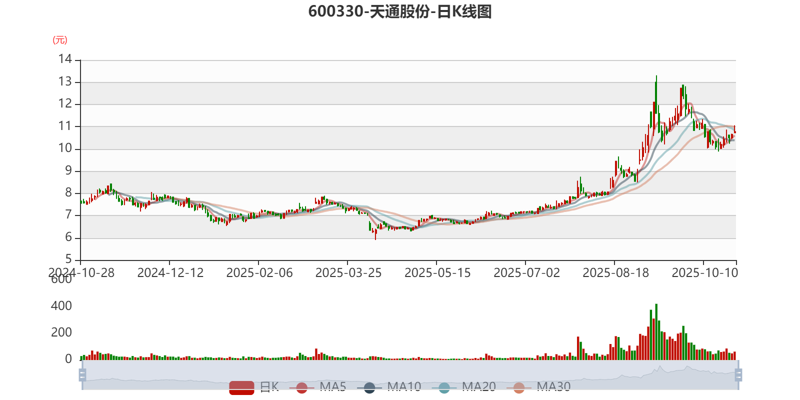 中证智能财讯天通股份(600330)10月28日披露2025年第三季度报告。前三季度公司实现营业总收入24.59亿元,同比下降3.96%;归母净利润5731.76万元,同比下降53.85%;扣非净利润498.59万元,同比下降95.07%;经营活动产生的现金流量净额为-4749.82万元,上年同期为-4037.45万元;报告期内,天通股份基本每股收益为0.047元,加权平均净资产收益率为0.72%。