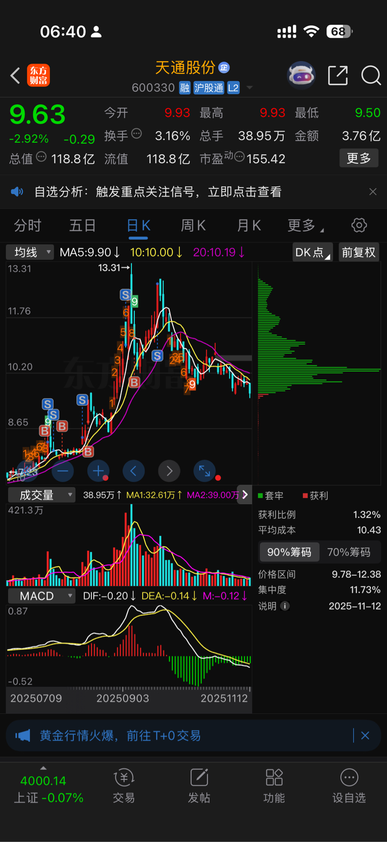 $天通股份(SH600330)$ 没有一键清仓,后悔了
