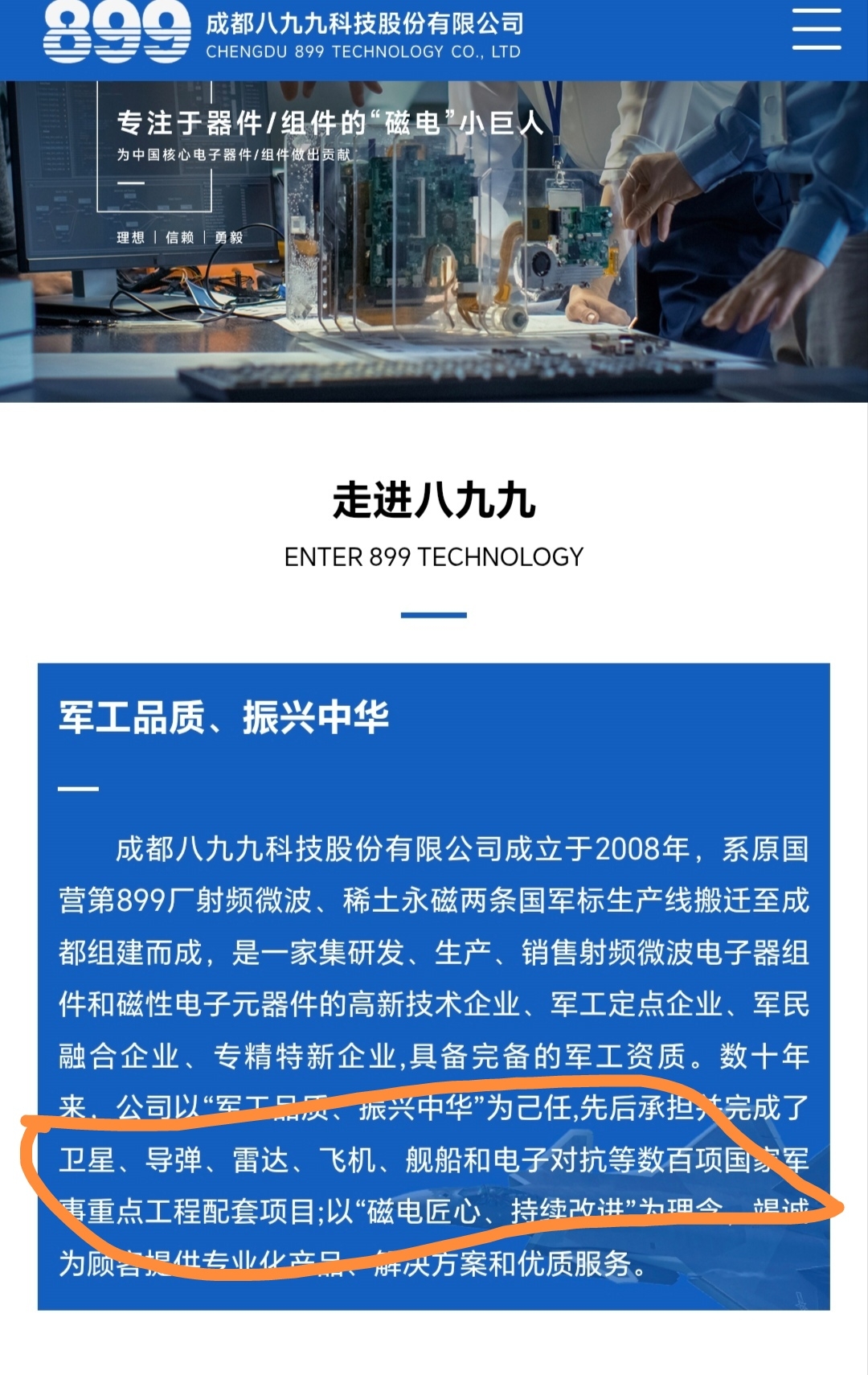 家人们,天通股份除了代工生产商业卫星外,天通股份旗下还有家非常重要的正宗的军工航天工厂:成都八九九。八九九是正宗的军工厂,旗下产品应用在卫星、雷达、飞机等上面!商业航天的正宗公司啊!