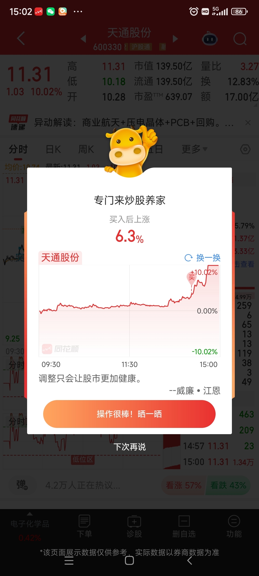 $天通股份(SH600330)$ 商业航天,别的都涨的差不多了,这货才开始涨。就是买的有点少了!!