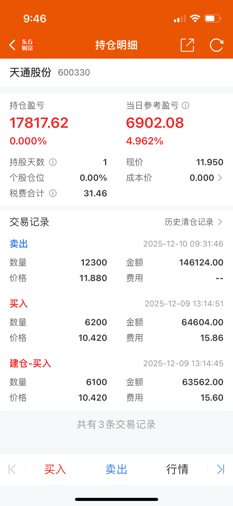 $天通股份(SH600330)$ 留下的发财,感谢主力
