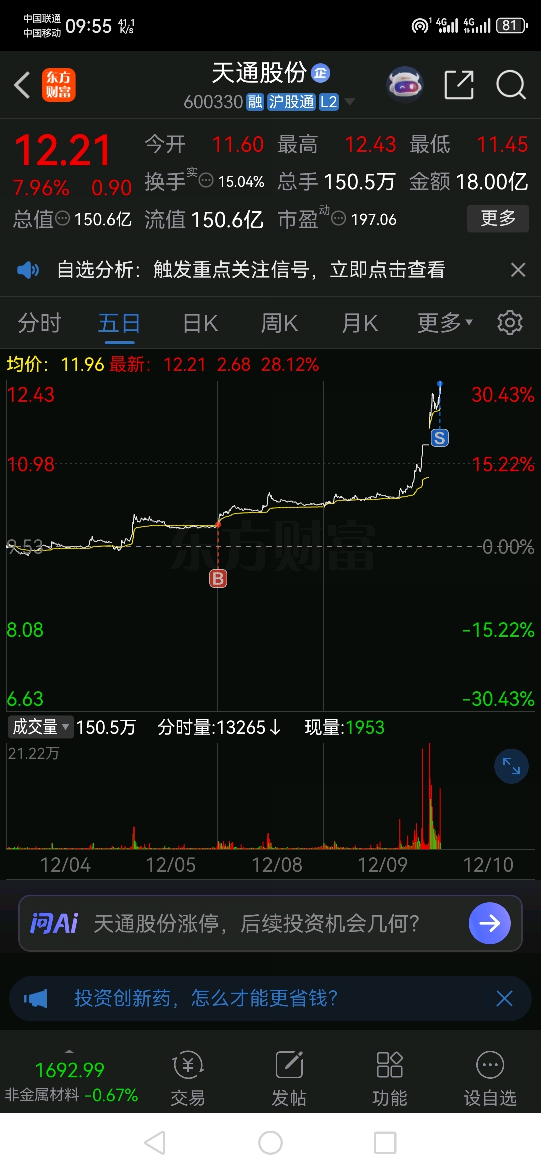 $天通股份(SH600330)$ 完美,磨磨唧唧不涨停,那就是出货,不要小瞧主力的资金,还没有连板基因