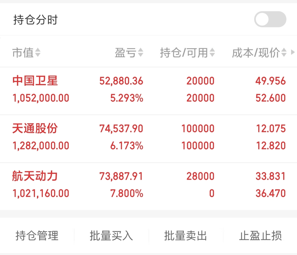目前持有:$天通股份(SH600330)$ $中国卫星(SH600118)$