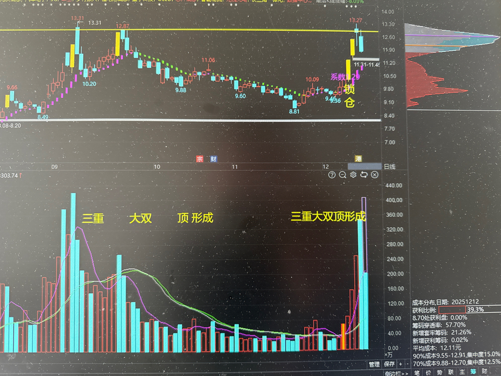 三重大双顶形成,韭菜们站岗半个月,必须磨到你们蠢韭菜割肉,放量见顶,然后阴跌到平