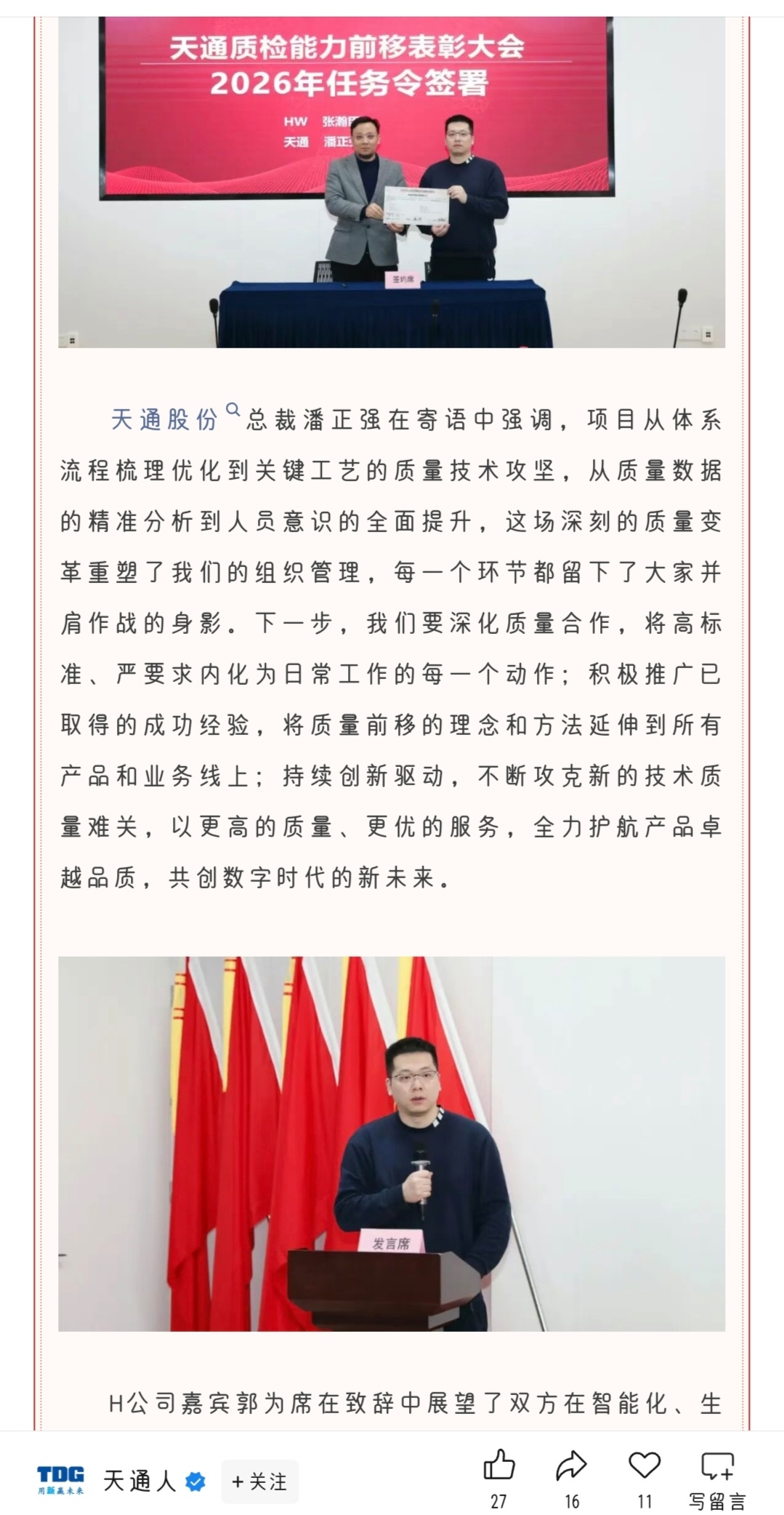 天通股份昨晚发文,和华为一起搞质量体系!只有成为了华为供应商,华为才会去供应商厂