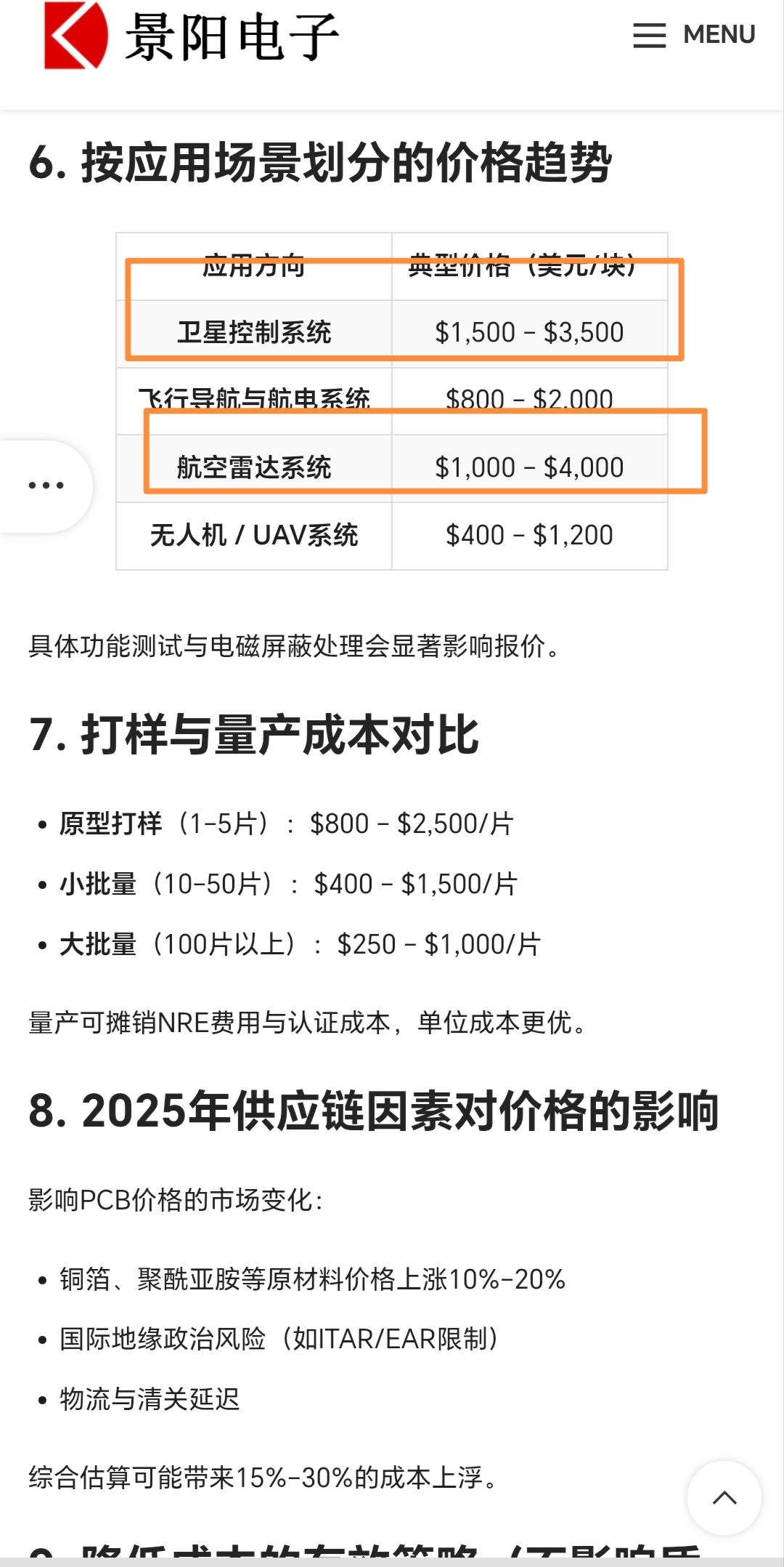 目前商业卫星一块电装板是2万元人民币以上。