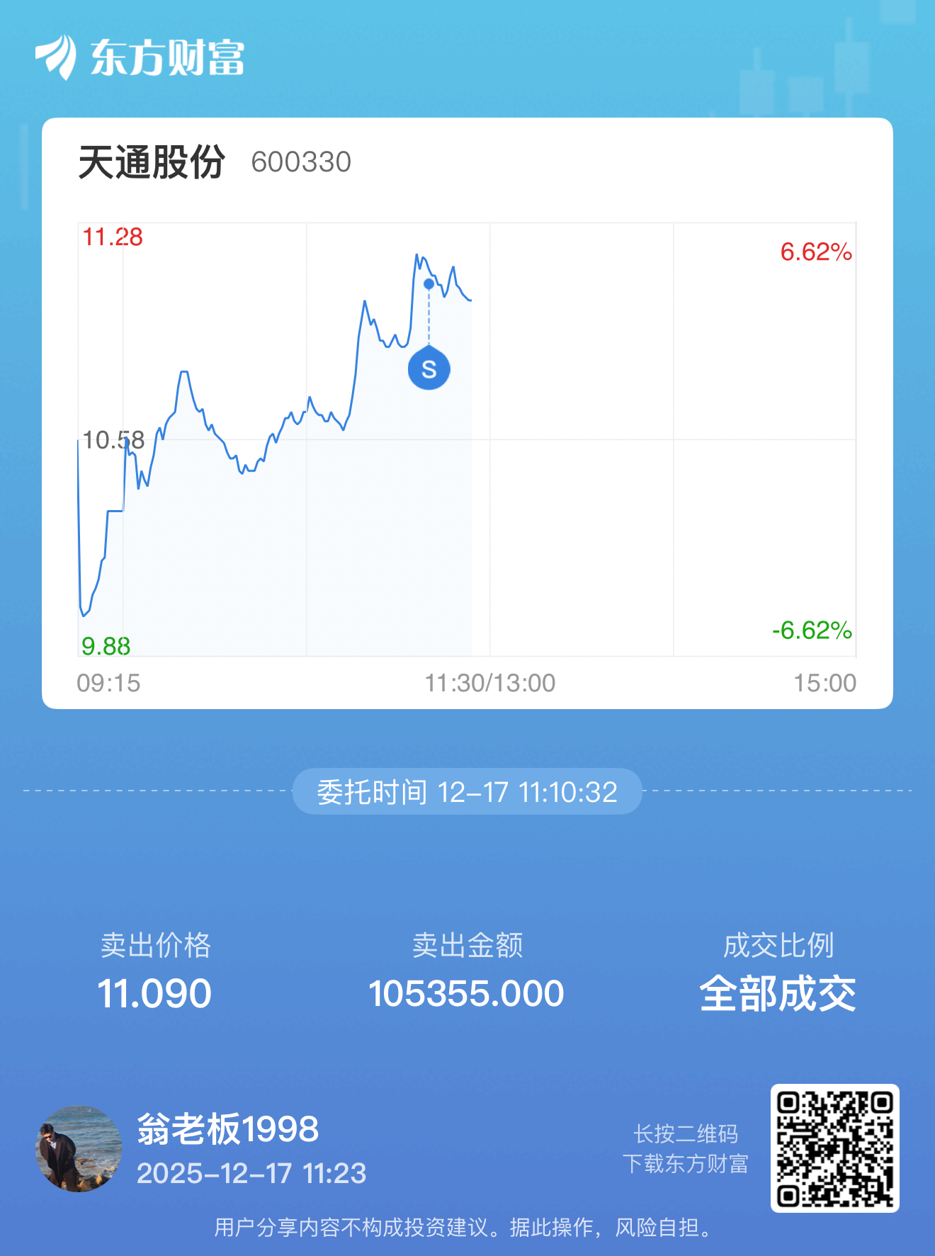 $天通股份(SH600330)$ 格局不了了,再见兄弟们