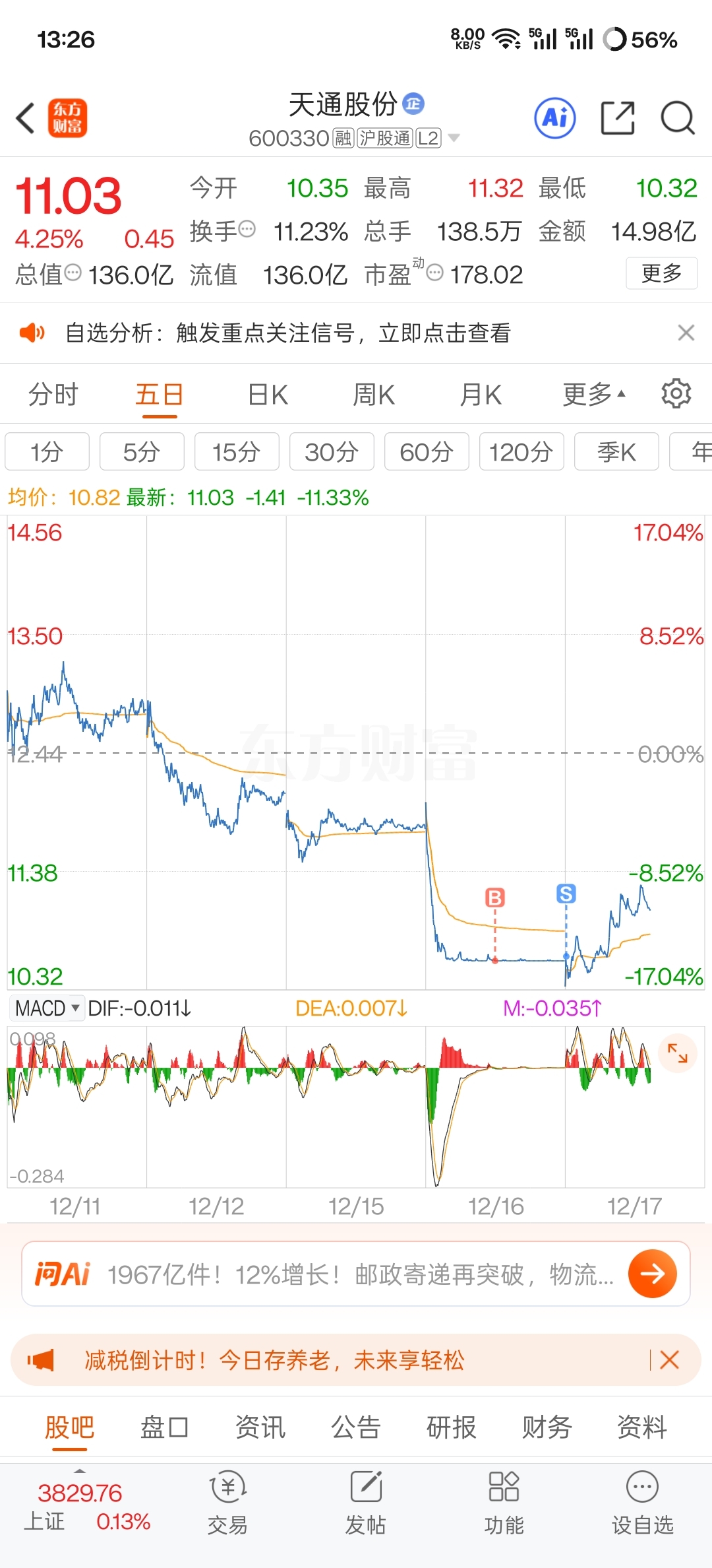 $天通股份(SH600330)$ 最近账户亏太多了,昨天板上买的,今天平仓出的,格局不了