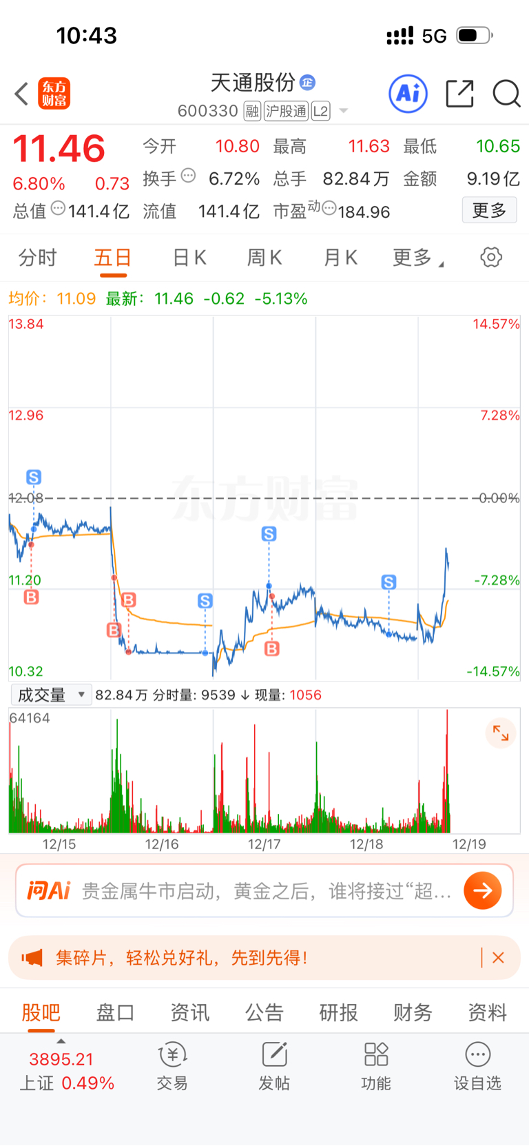 $天通股份(SH600330)$ 一卖就涨一买就跌,主力你监控我账号了,就差我10手吗