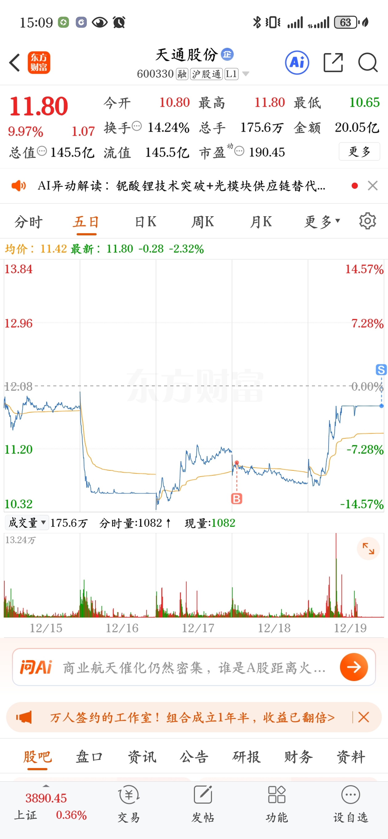 $天通股份(SH600330)$ 昨天刚买就收获一个涨停,今天冲高回落,差点没拿住