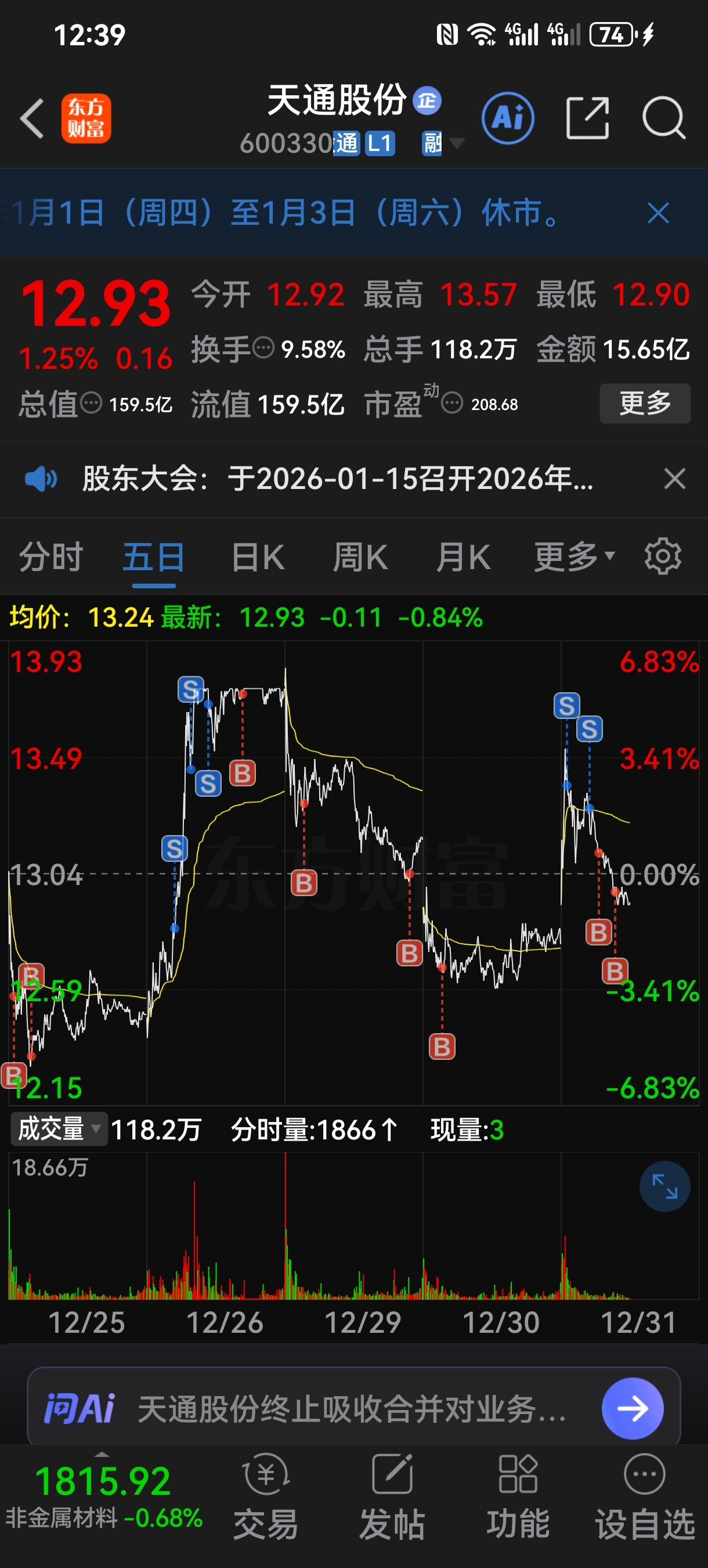 $天通股份(SH600330)$ 成本6千股成本3元2