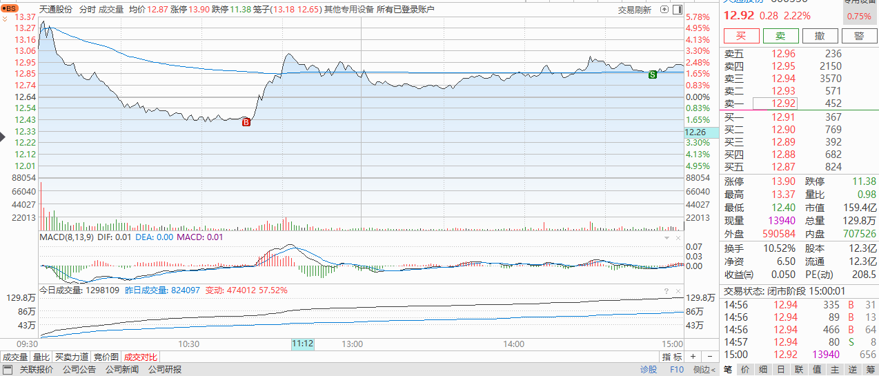 还是主观上看好天通,拉高后舍不得T出,最后只能在回落均线时T出