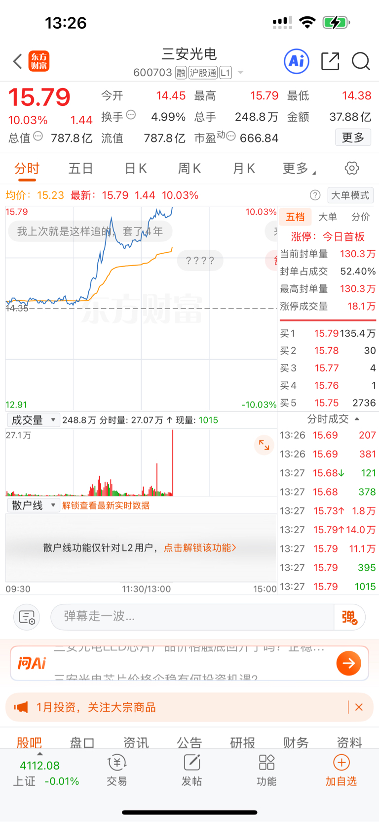 $天通股份(SH600330)$ 三安光电也涨停了,还不动啊