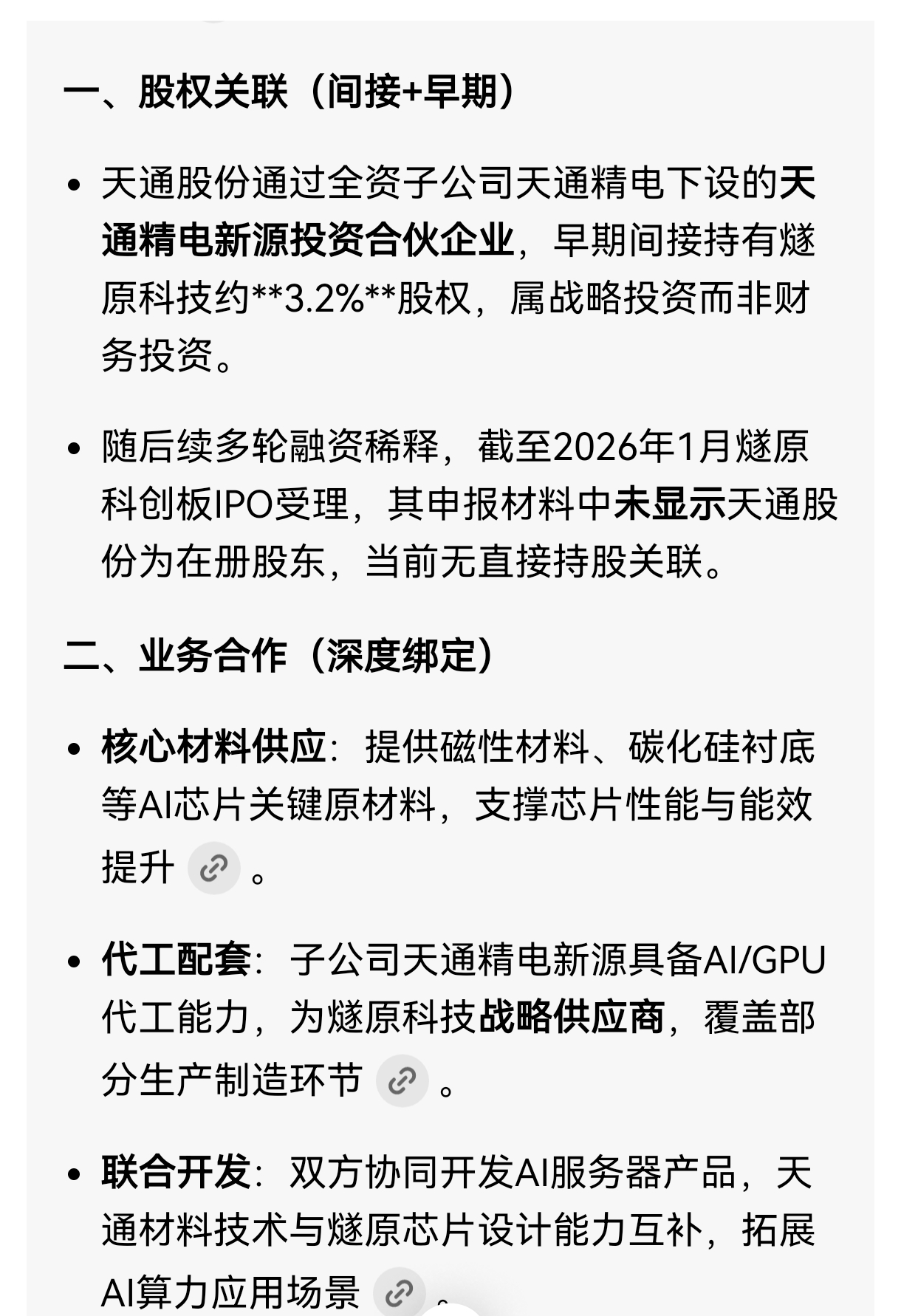 $天通股份(SH600330)$ 天通与燧原科技关系(燧原与沐曦,摩尔线程,壁仞合称中国GPU四小龙)见图
