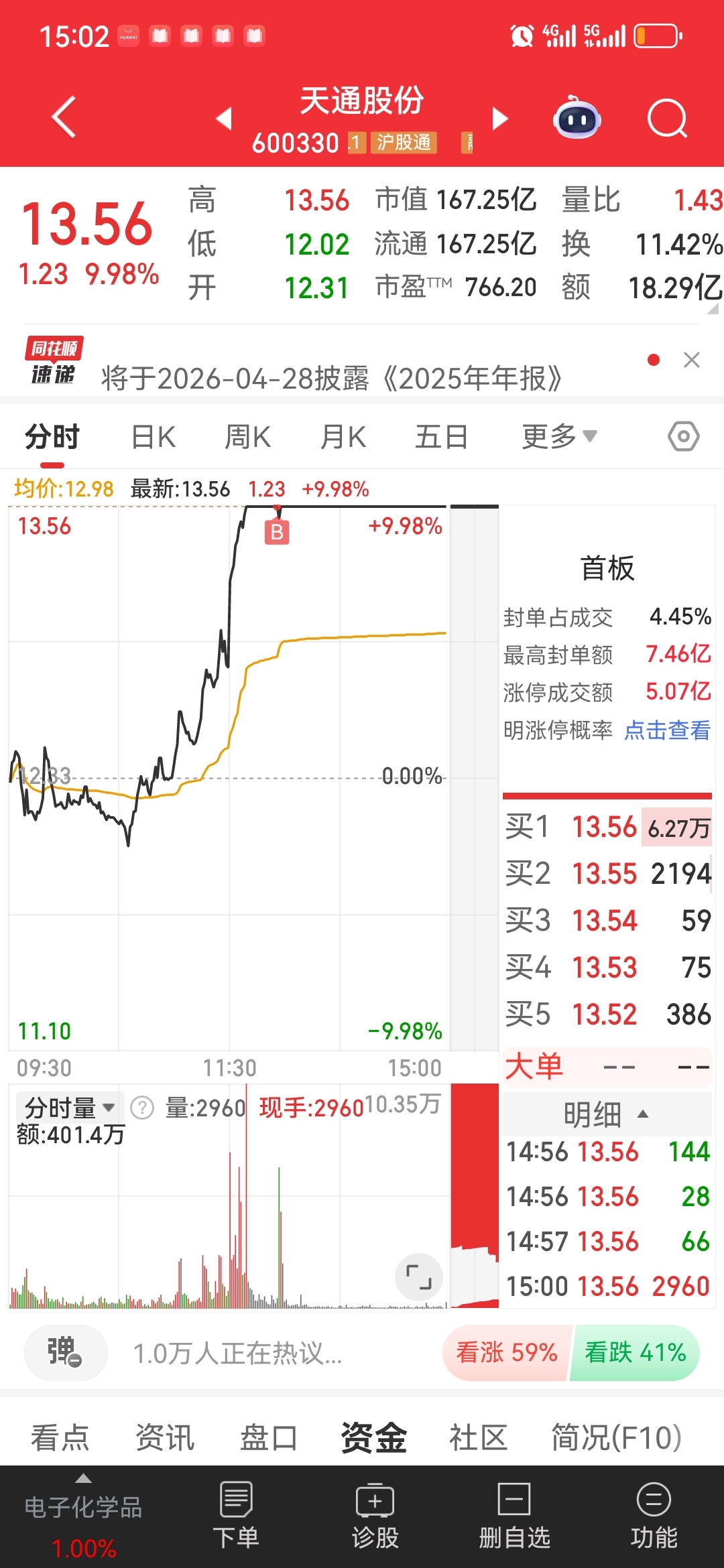 $天通股份(SH600330)$ 炸板的时候进来的,周一吃溢价