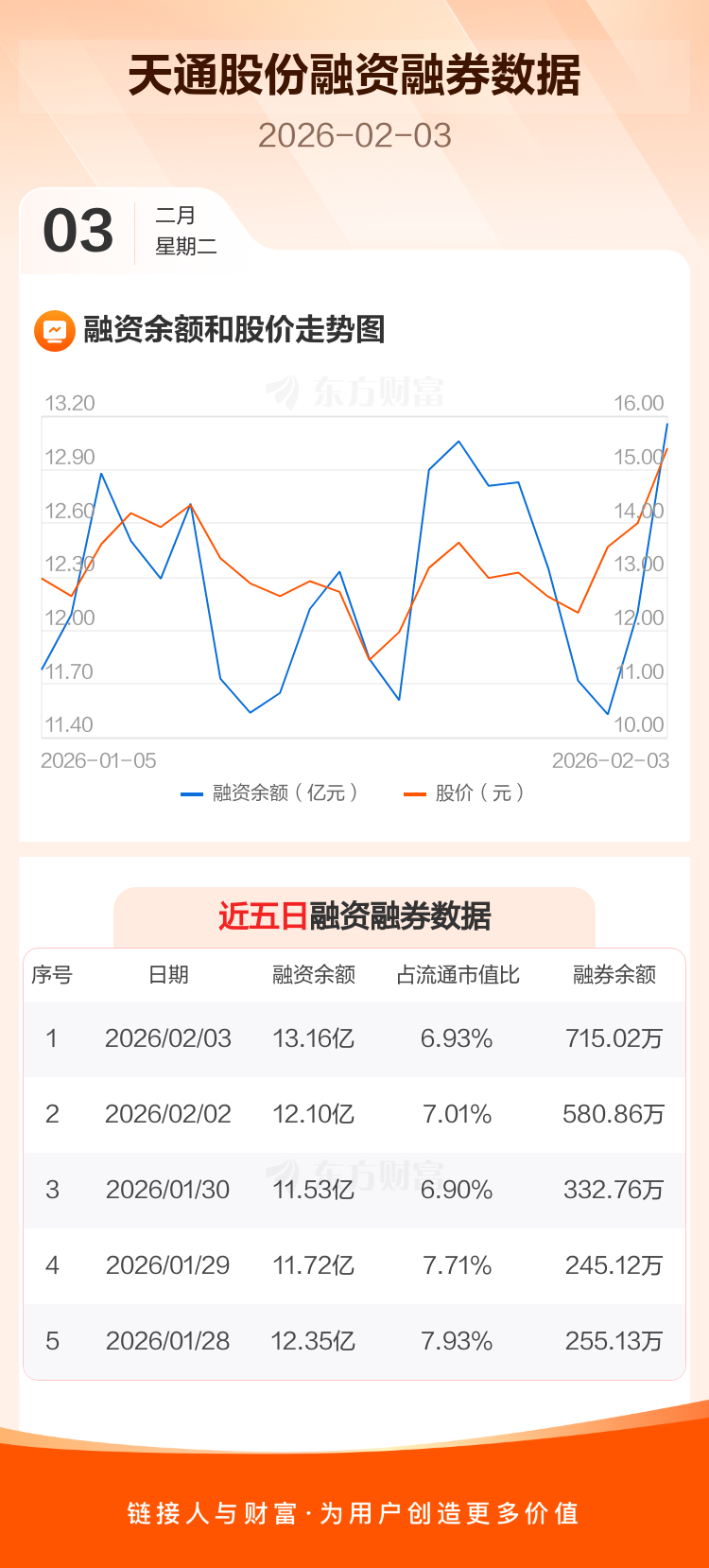 交易所最新数据显示,天通股份于2026年2月3日获融资买入2.65亿元,融资偿还1.59亿元,当日融资净买入1.06亿元。目前,该股融资余额13.16亿,占流通市值比例为6.93%。
