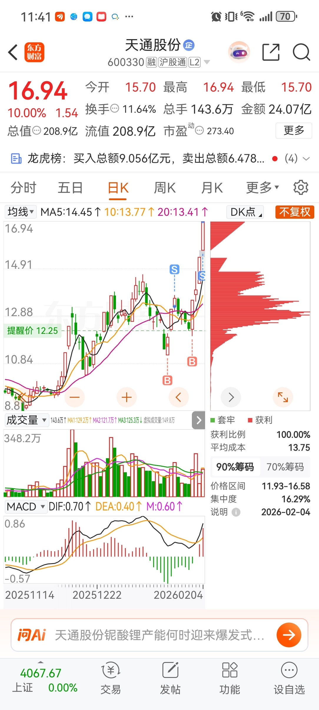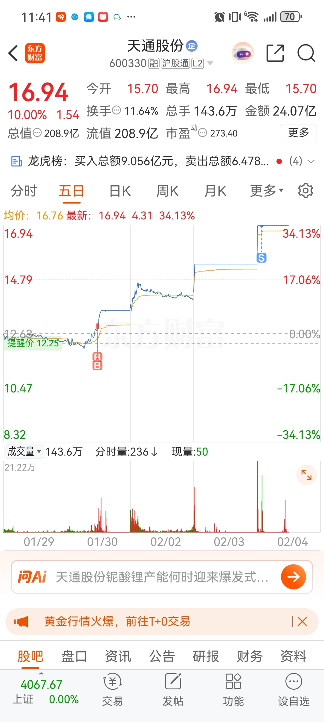 $天通股份(SH600330)$ 放量,不及预期,后面怎么走看不懂,走人。