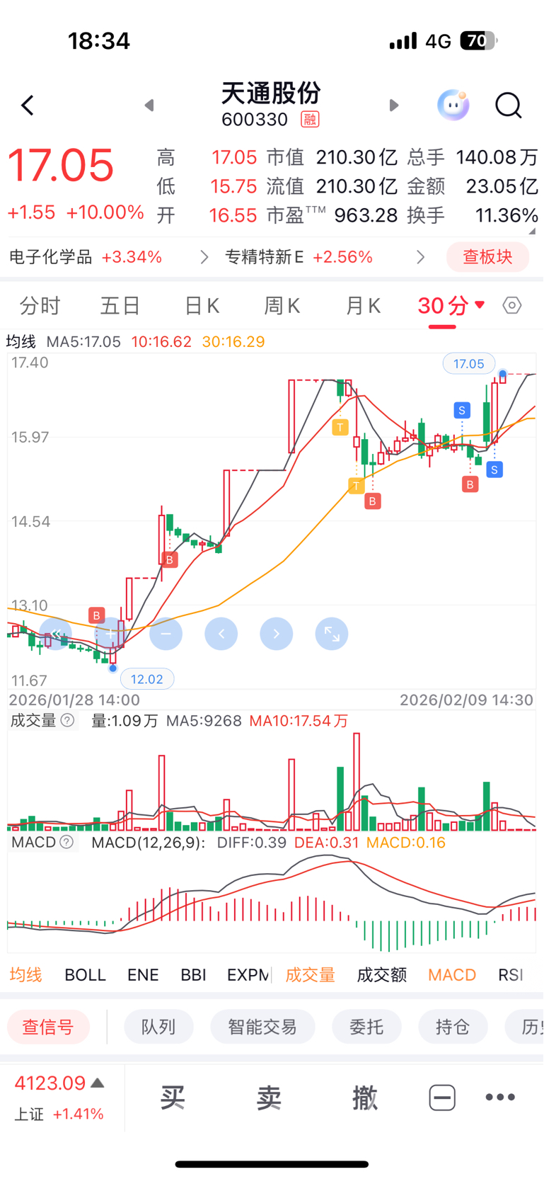 $天通股份(SH600330)$ 不知道今天是不是T飞了