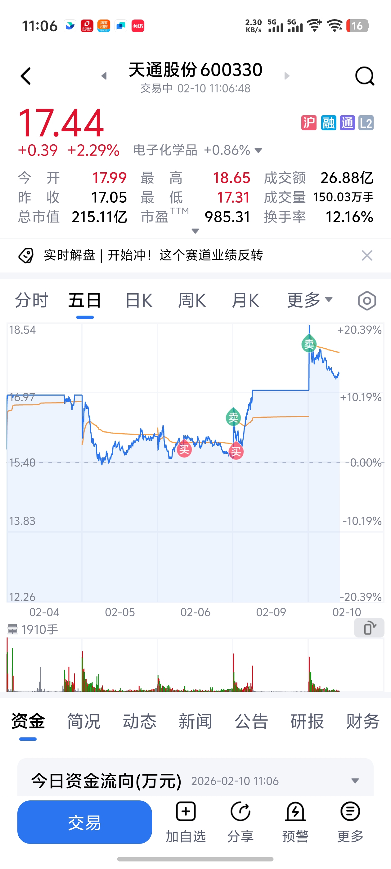 $天通股份(SH600330)$ 开这么高 找接盘侠呢哈哈哈哈