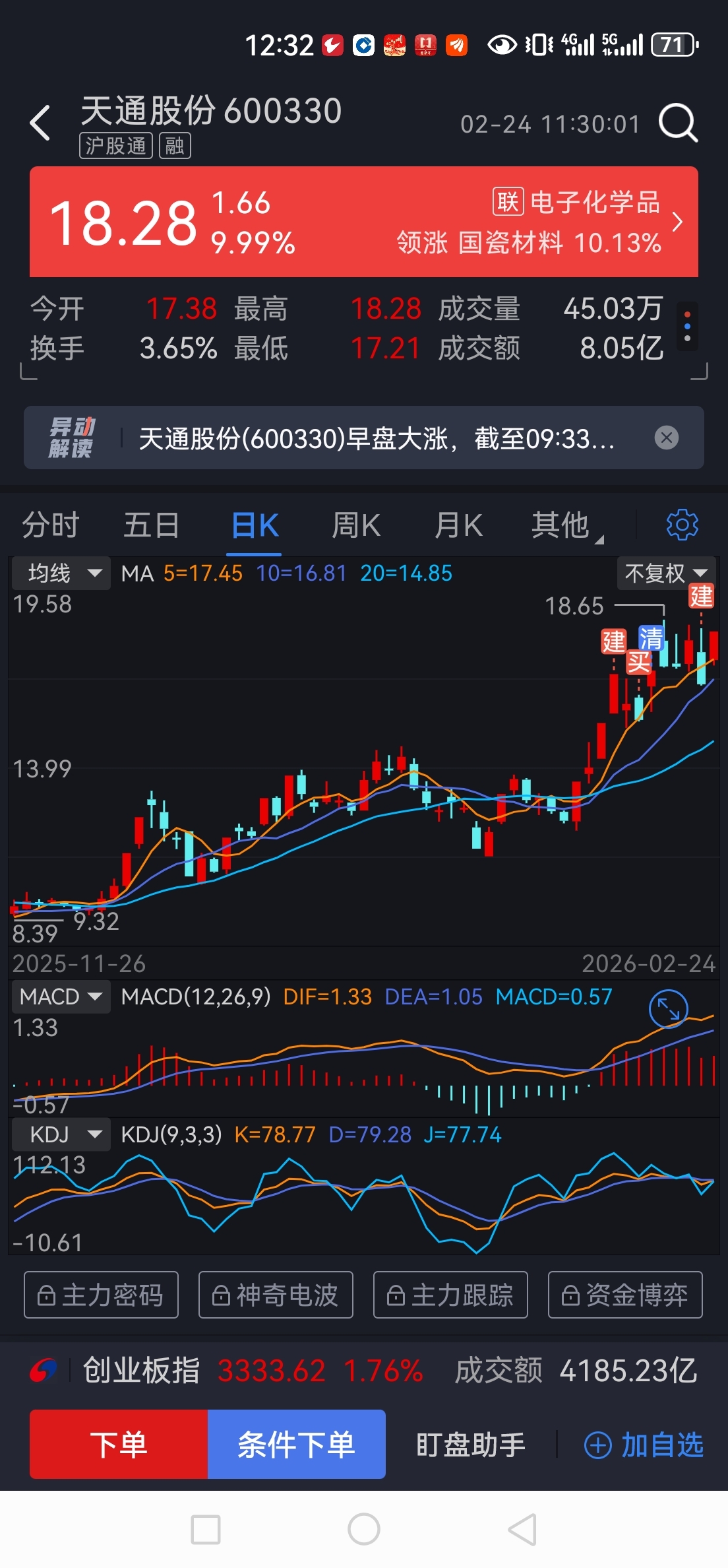 $天通股份(SH600330)$ 年前进今天收获一板