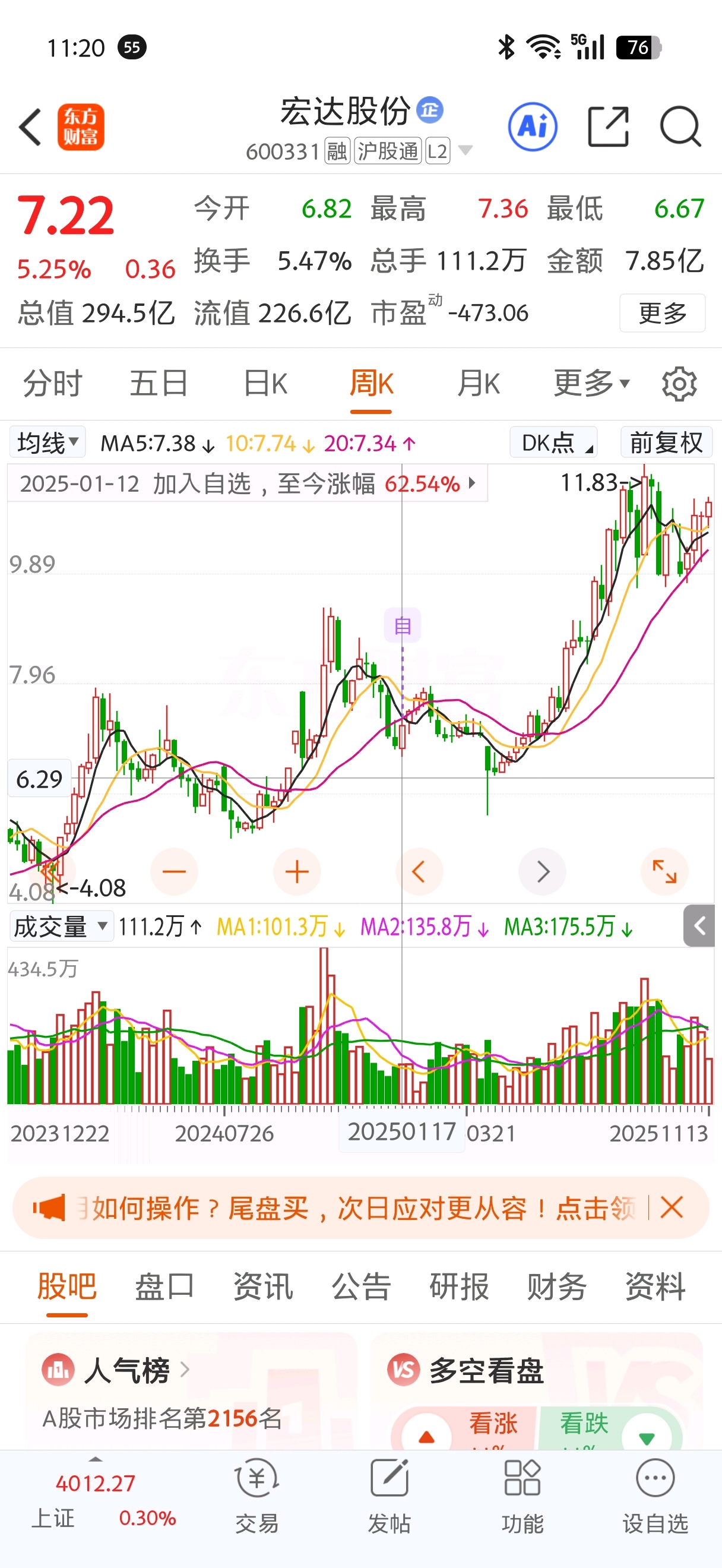 有些东西还是得信,那天晚上做梦梦见一只叫宏达股份的股票会涨,然后迷迷糊糊爬起来拿